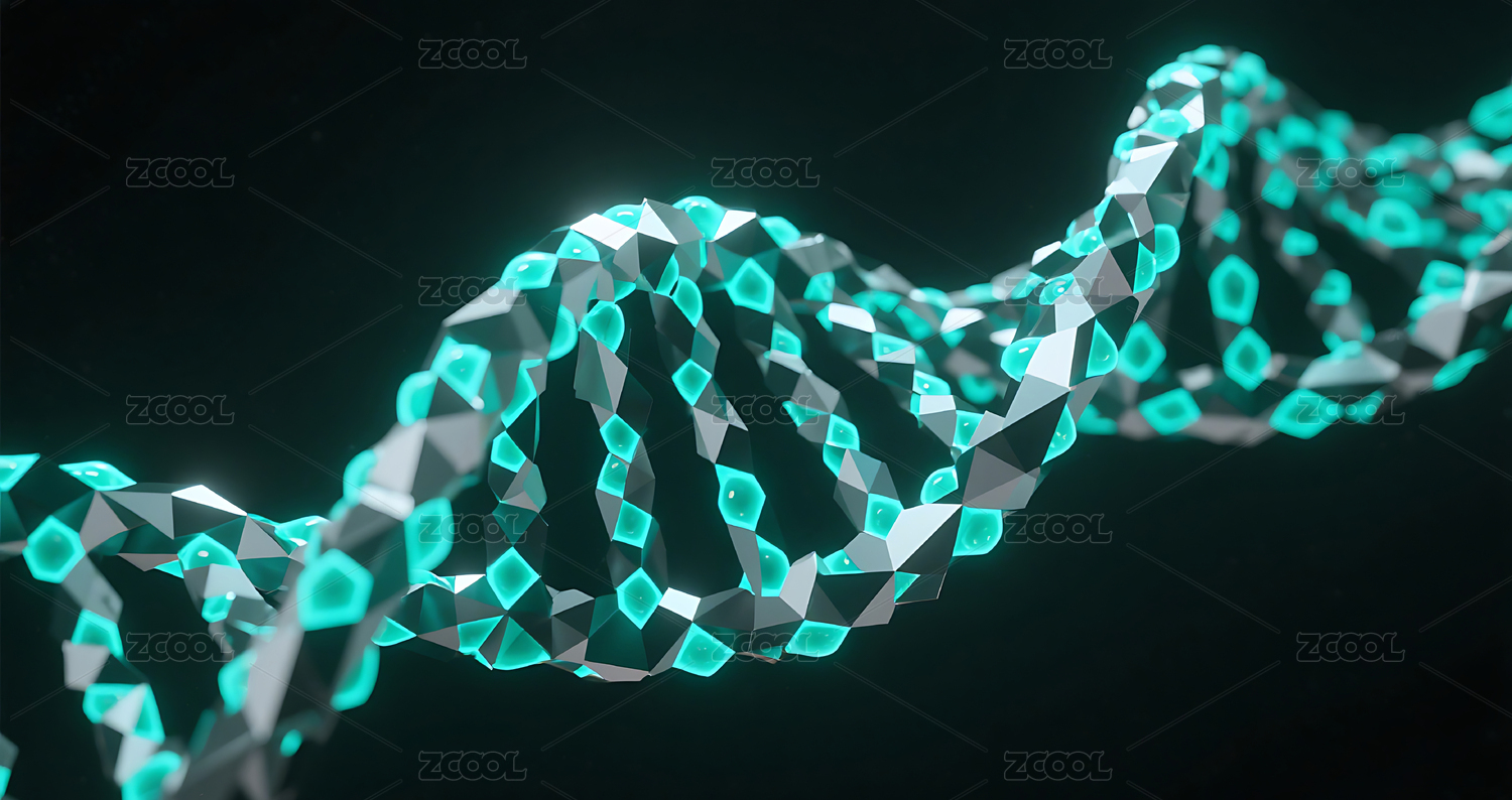 蓝色多边形DNA双螺旋科技感背景