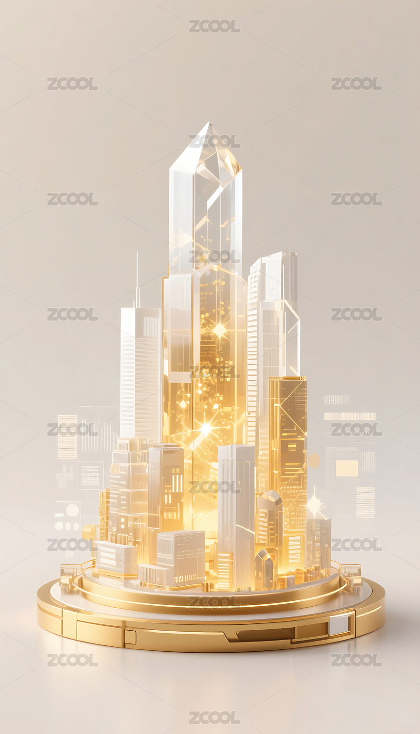 商务科技金色水晶质感城市建筑模型