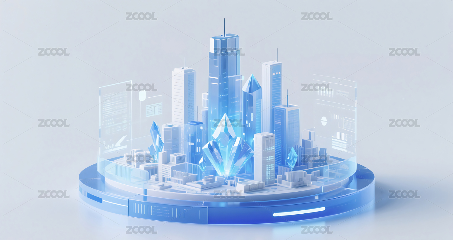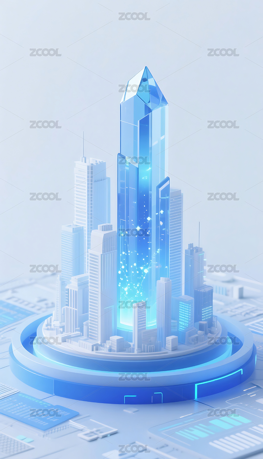 商务科技蓝色水晶质感城市建筑模型