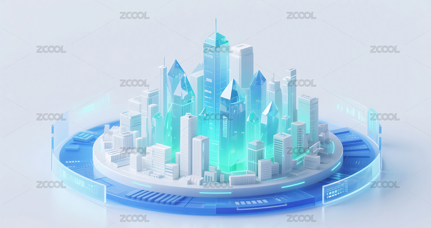 商务科技蓝绿色水晶质感城市建筑模型