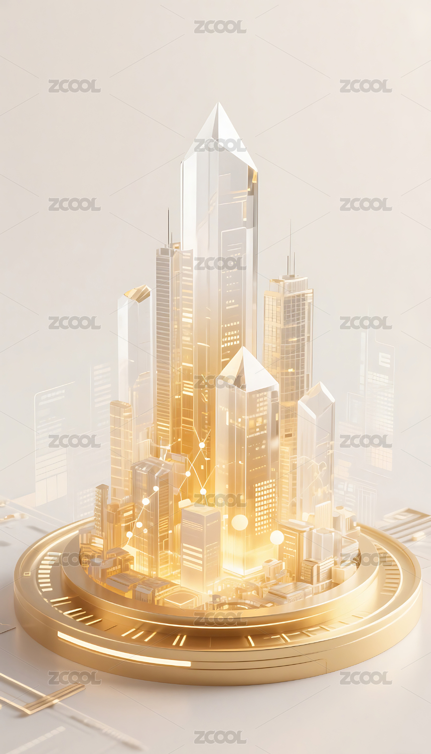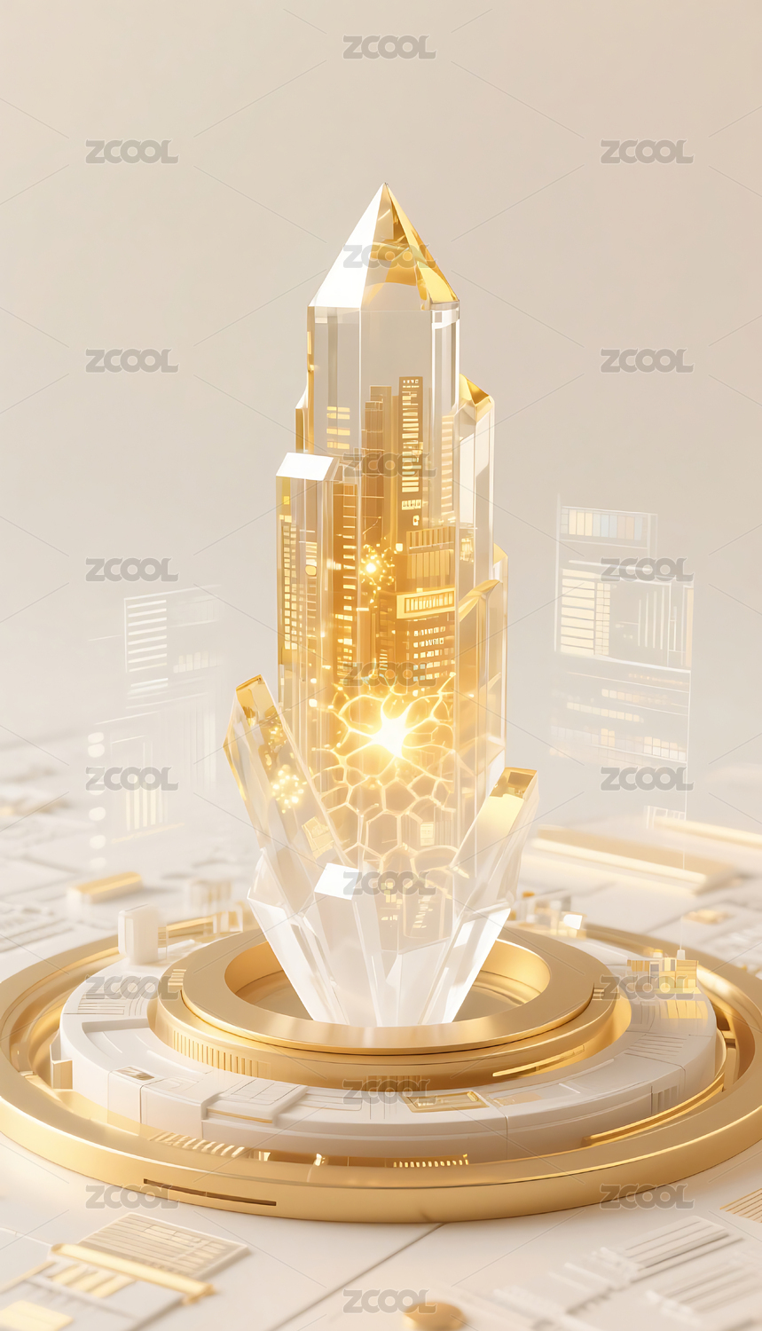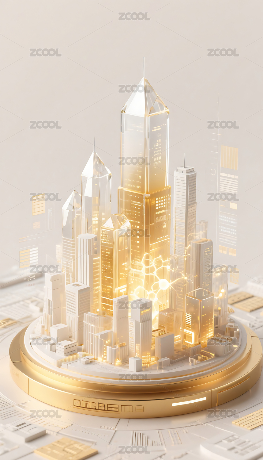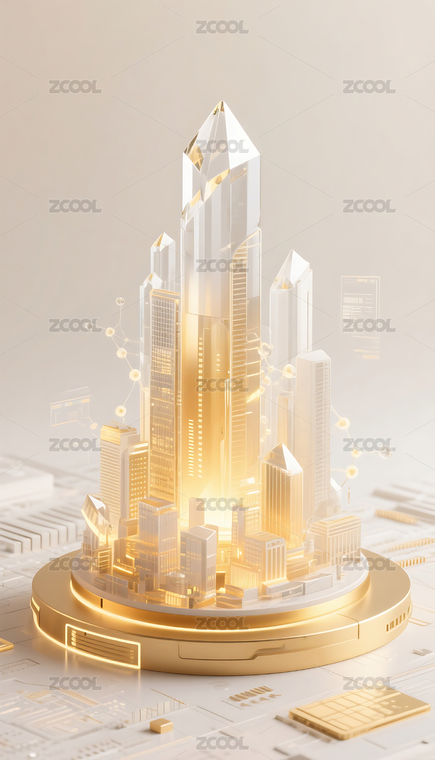 城市,建筑,模型,3D,水晶,背景,底座,数据,金色