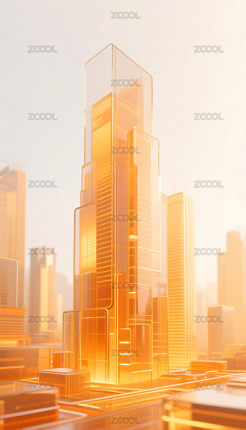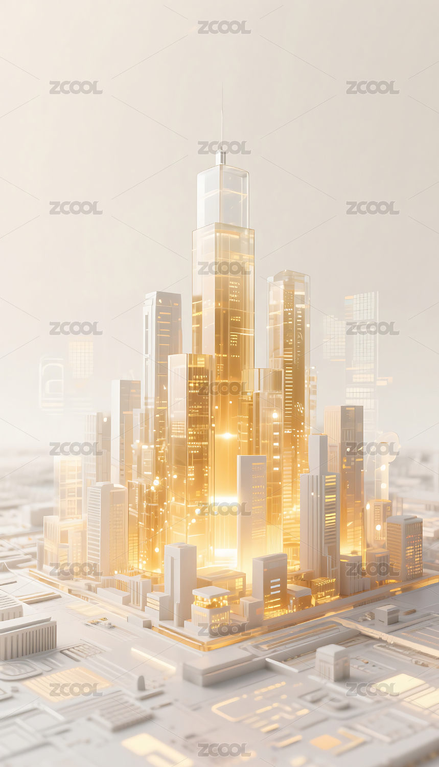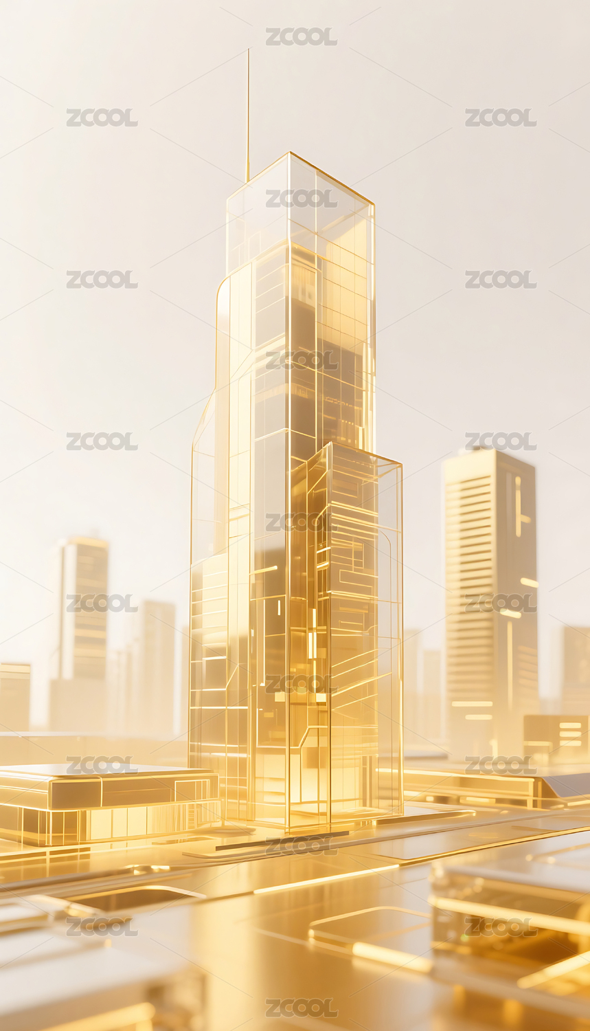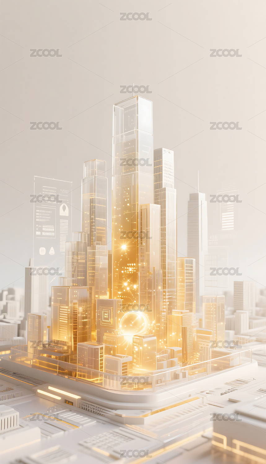 城市,建筑,模型,3D,水晶,背景,底座,数据,金色,科技