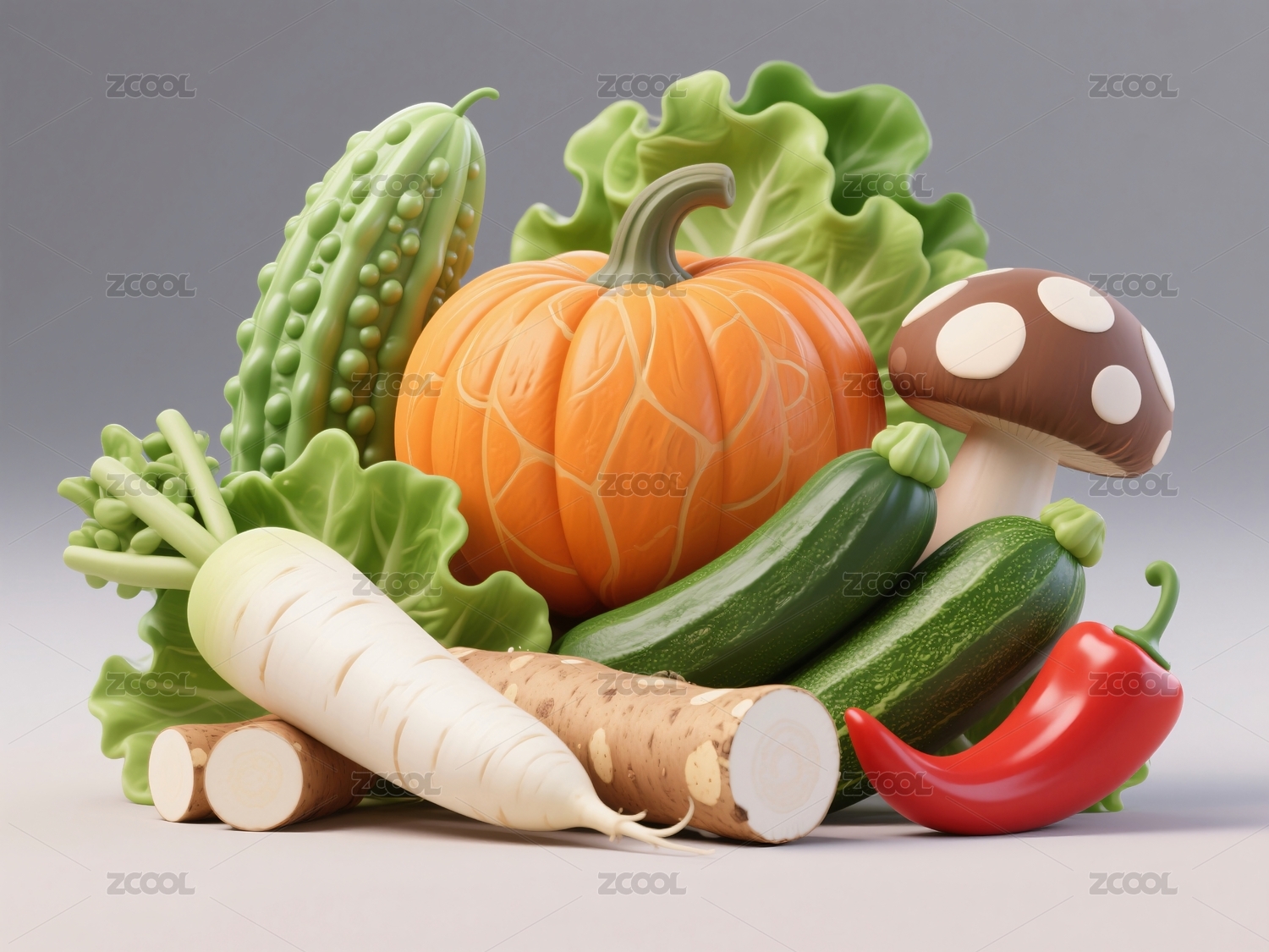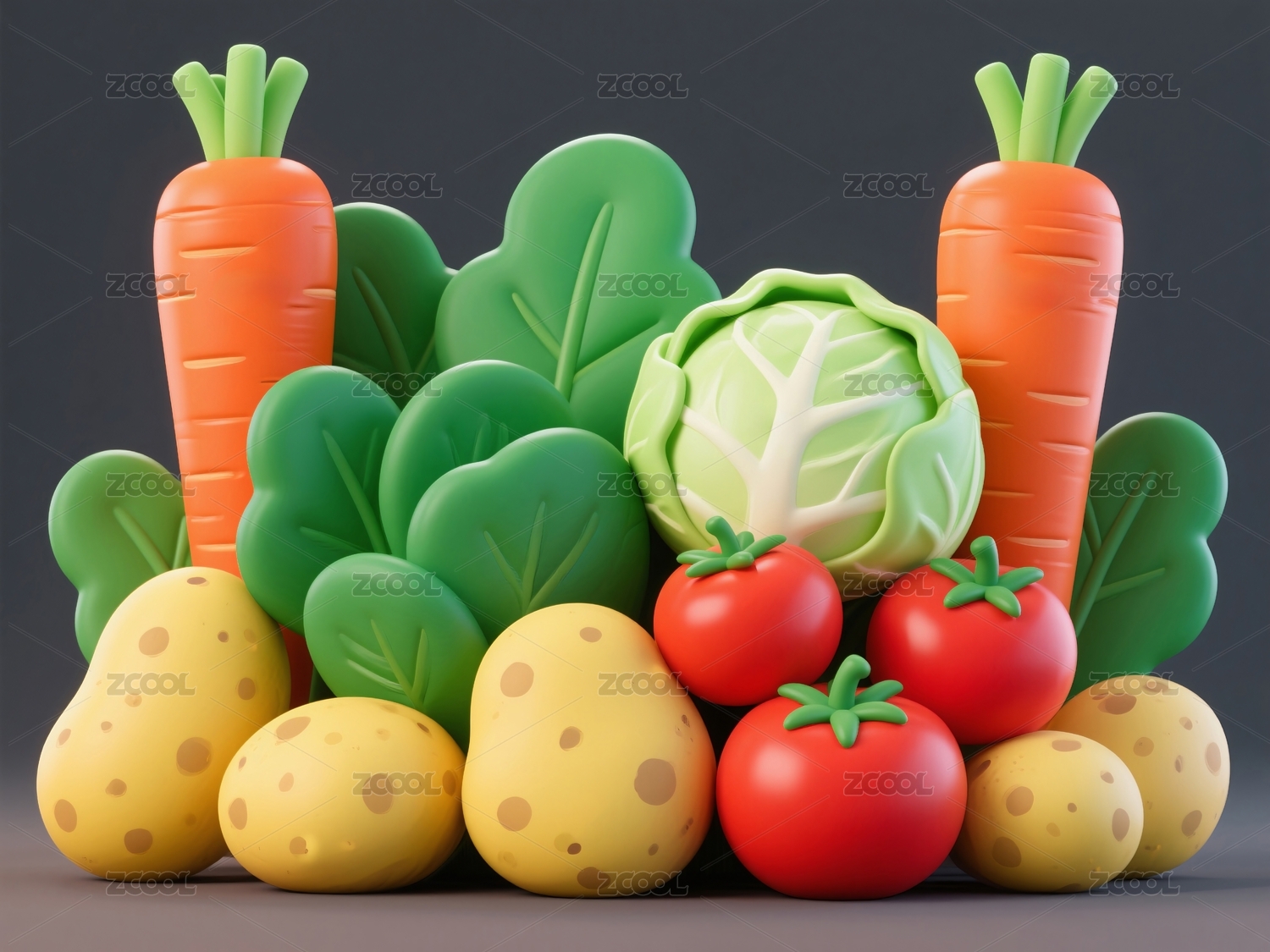 桌子上的彩色蔬菜3D可爱卡通玩具模型背景