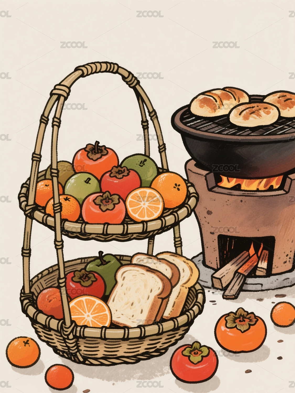 围炉煮茶吃点心饮茶喝茶绿茶红茶插画