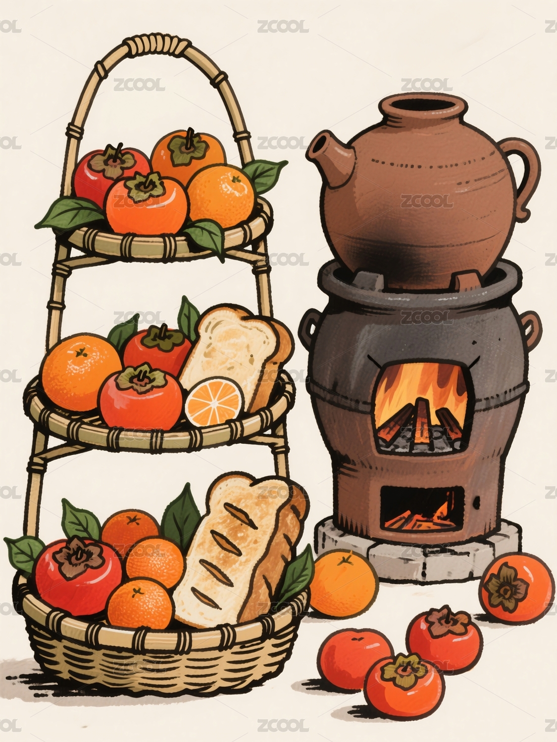 中式茶点围炉煮茶下午茶茶歇手绘素材