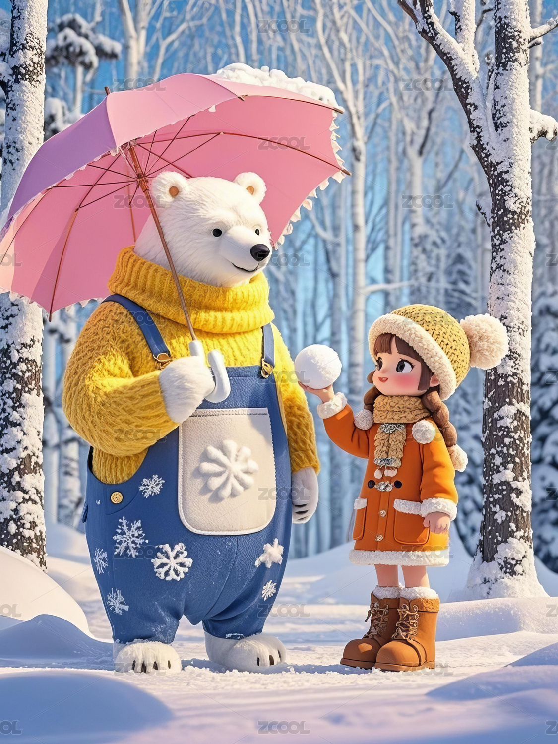 卡通绘本风冬季穿搭打扮的小熊拟人形象