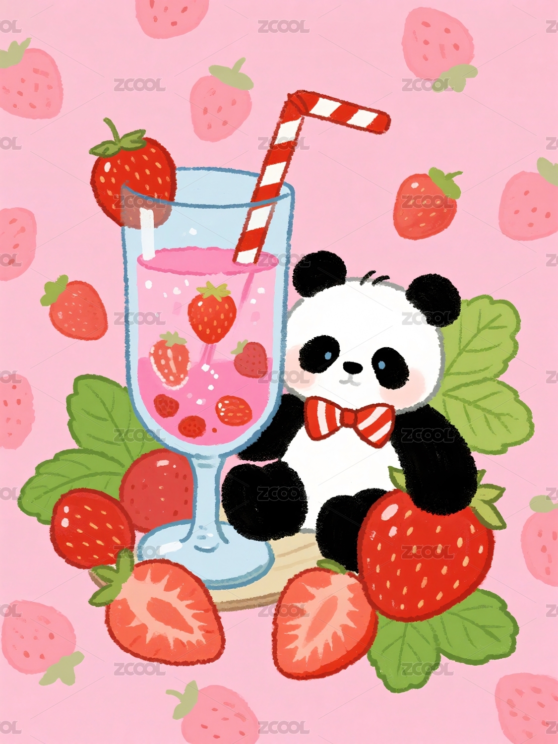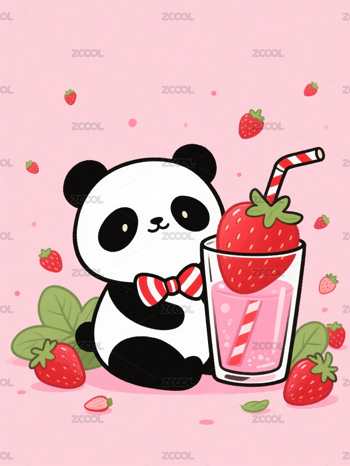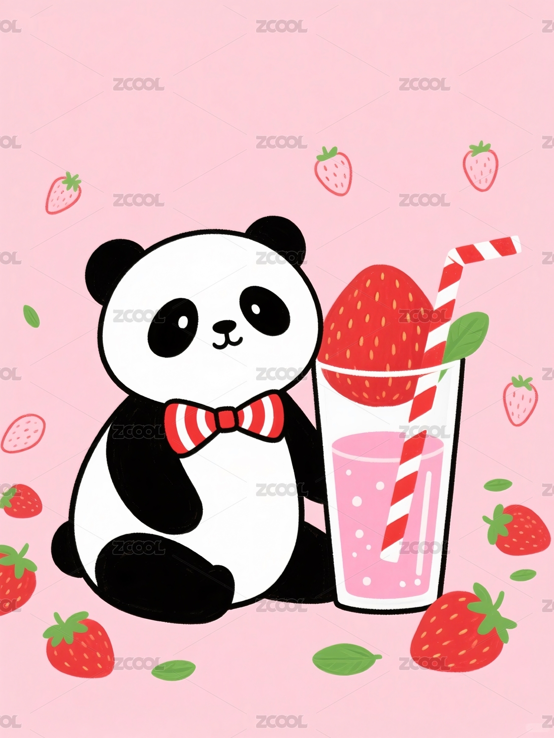 熊猫饮品草莓饮料粉色风格