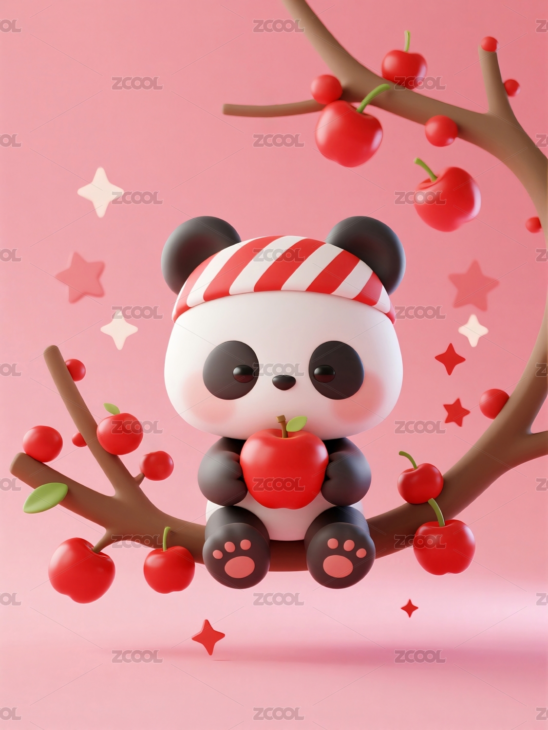 熊猫树上抱着红苹果