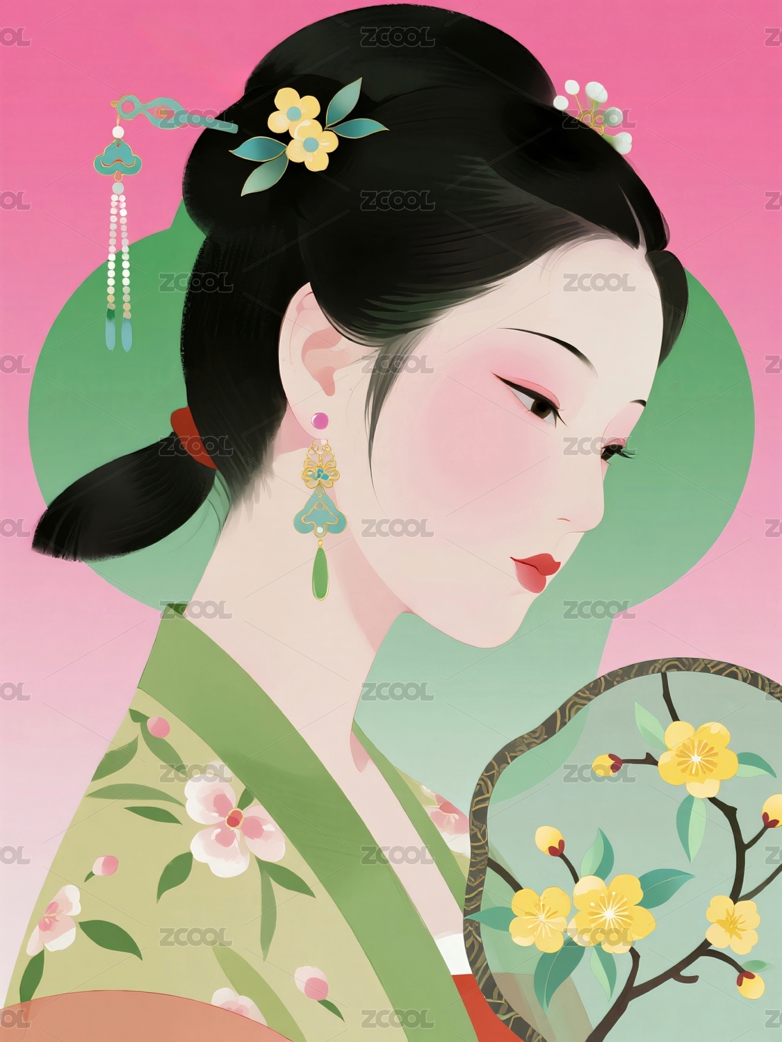 古典仕女侧身像精致妆容头饰