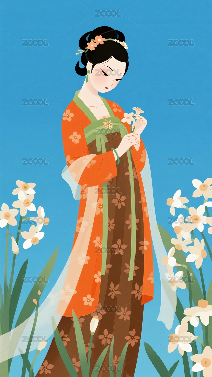 古装女子手捧鲜花站立