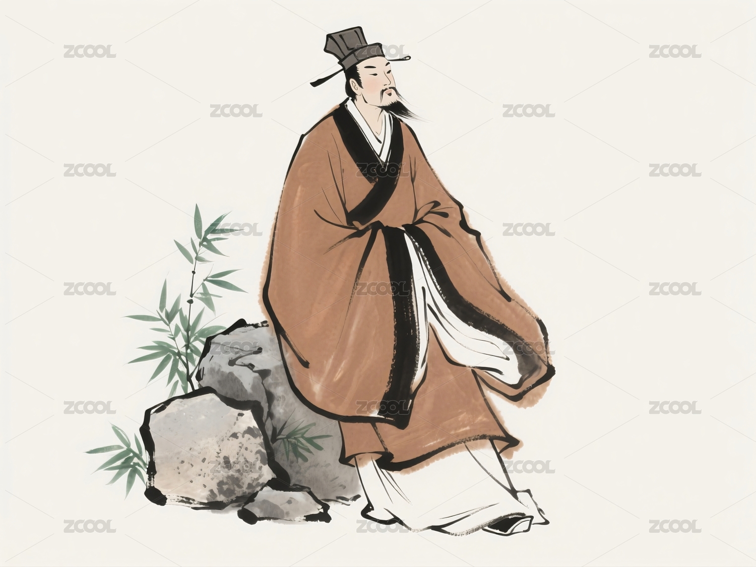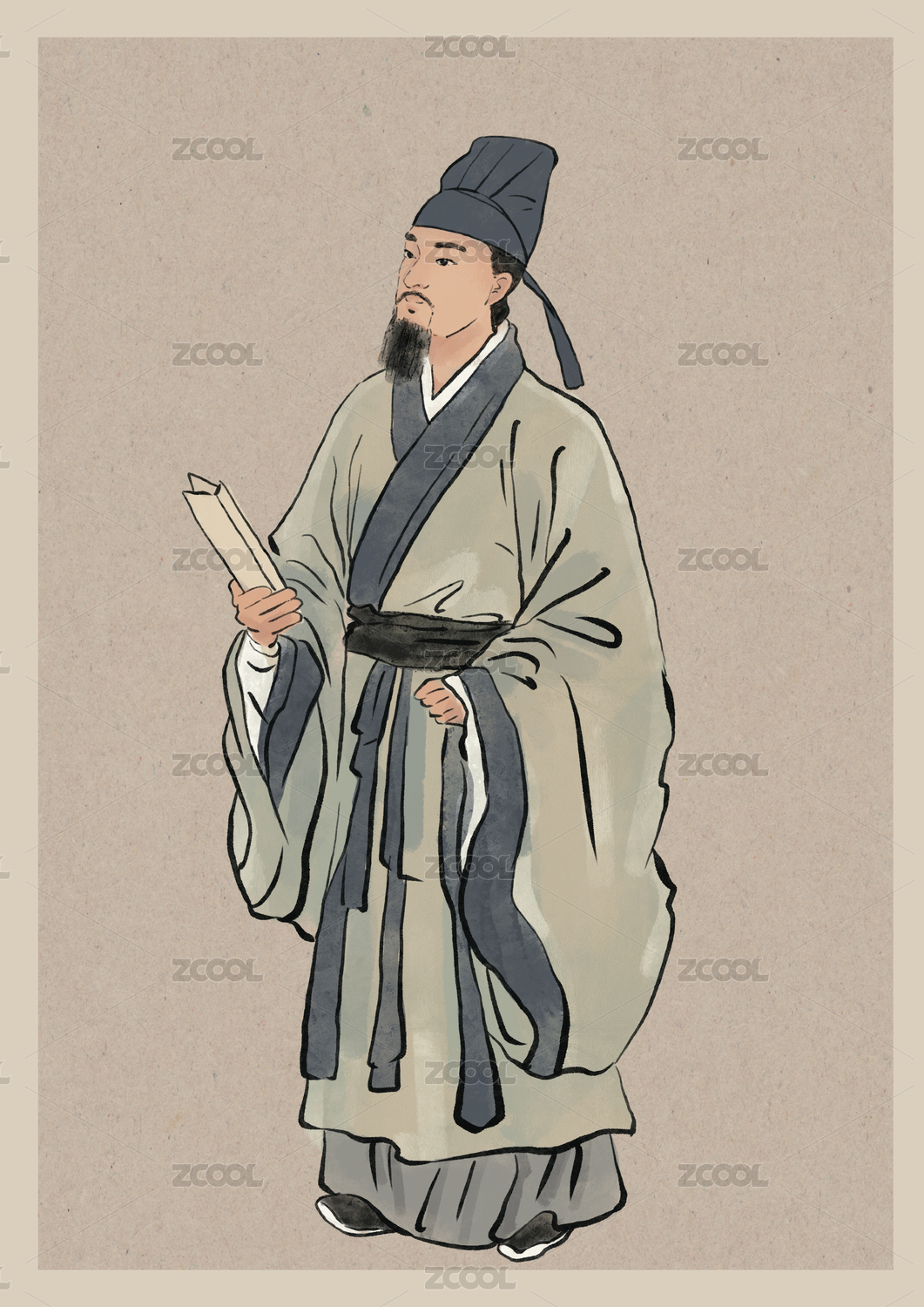古代,服饰,胡须,袍子,神态,传统,站立,拿着,穿着,站着