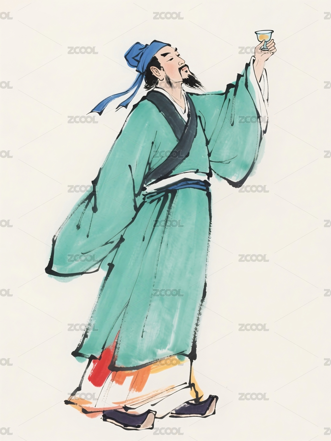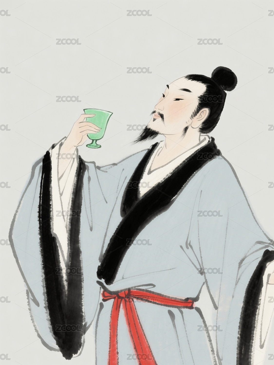 古人饮酒神态举杯畅饮