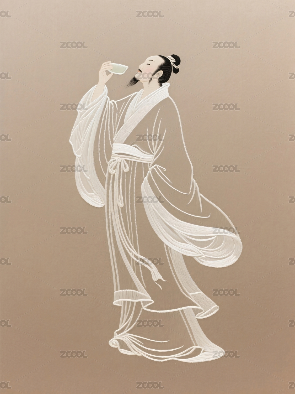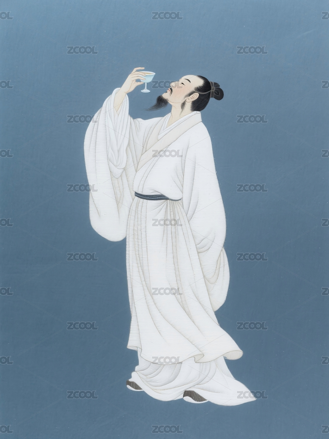 白衣男子举杯仰头饮酒