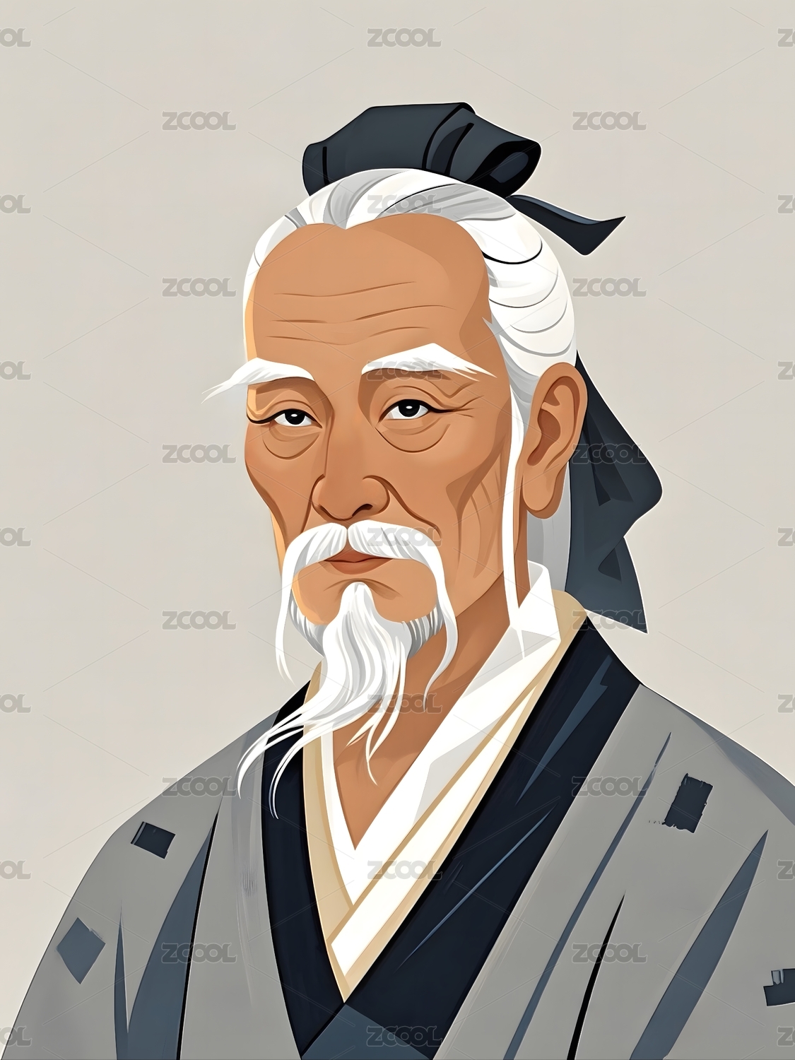 人物,古代,胡须,观察,长袍,思考,老人,专注,白色,形象