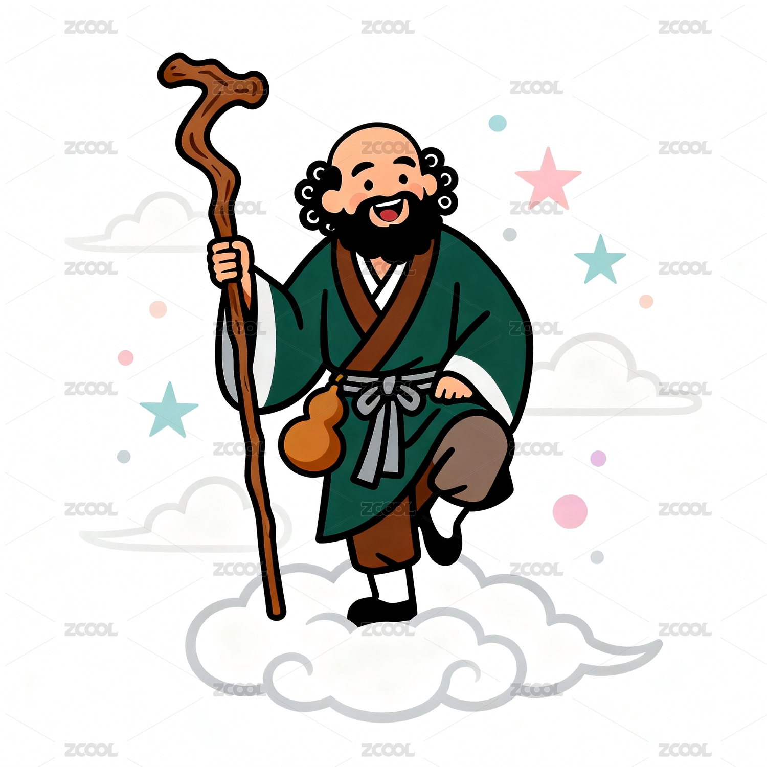 服饰,胡须,袍子,神态,传统,老人,笑容,开心,快乐,形象