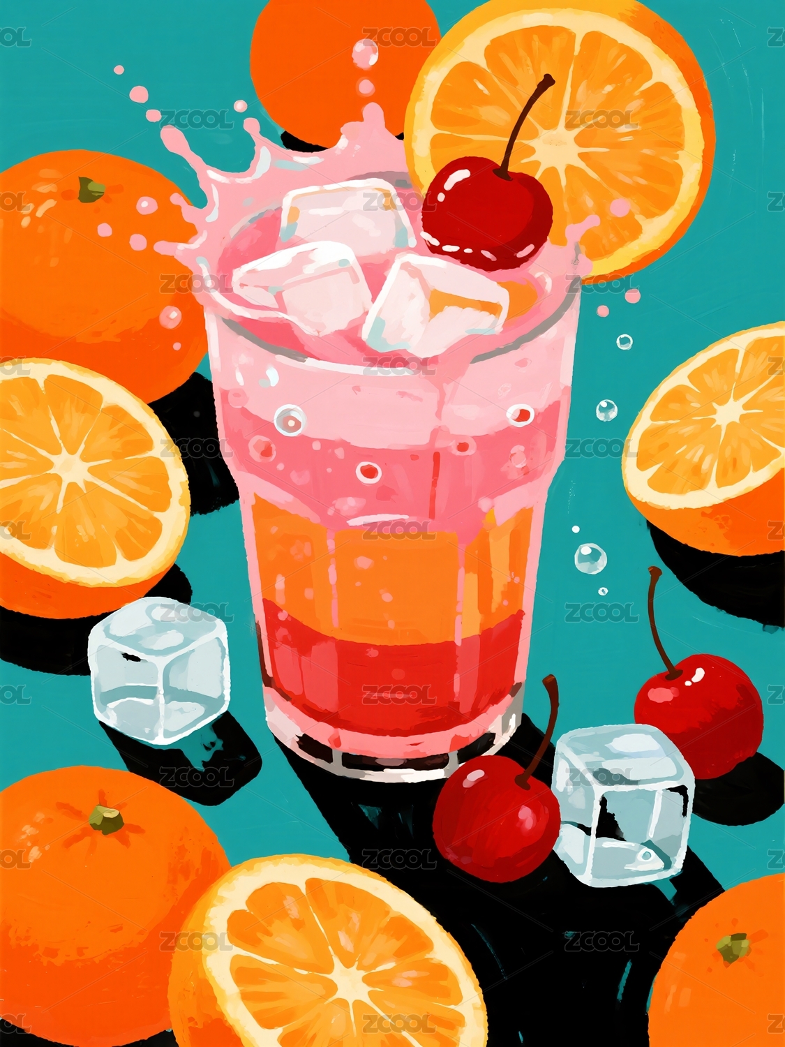 粉色饮品橙子冰块樱桃
