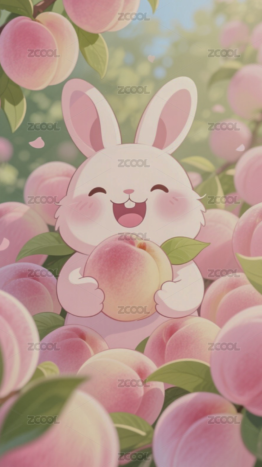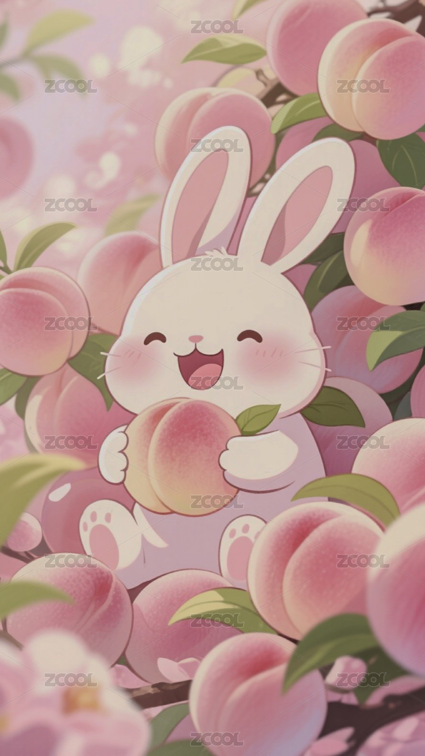 卡通,可爱,简单,水果,粉色,兔子,桃子,树枝,果实,小兔