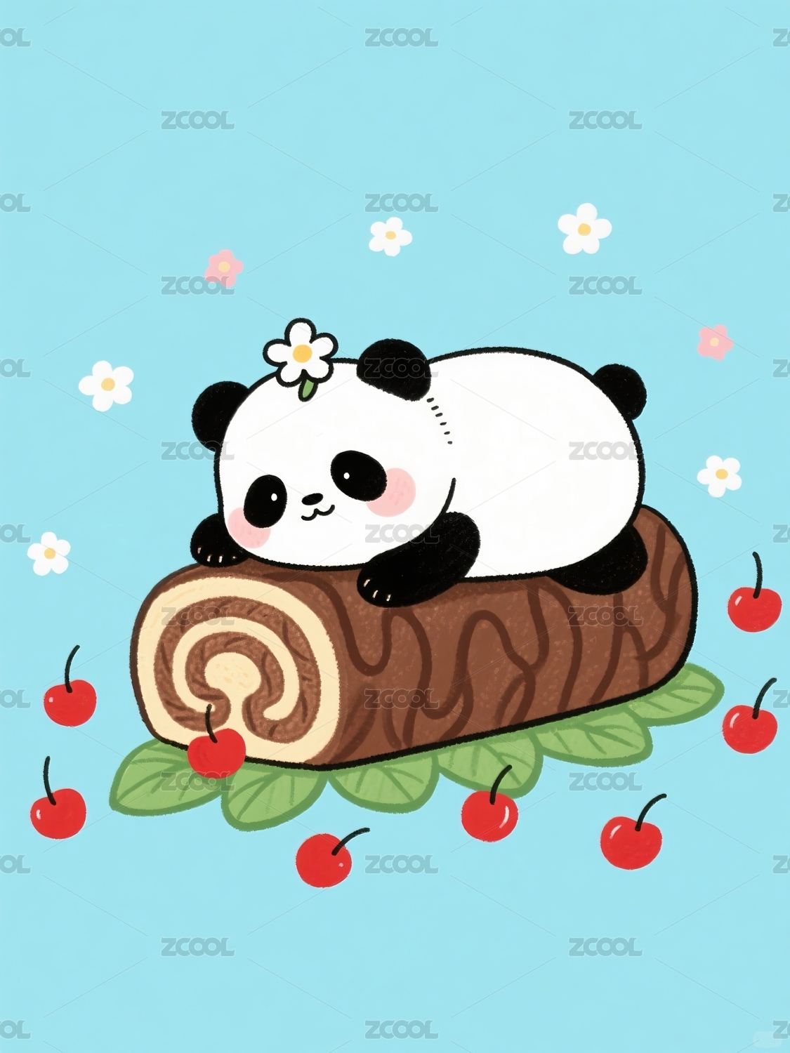 熊猫蛋糕躺在蛋糕卷上