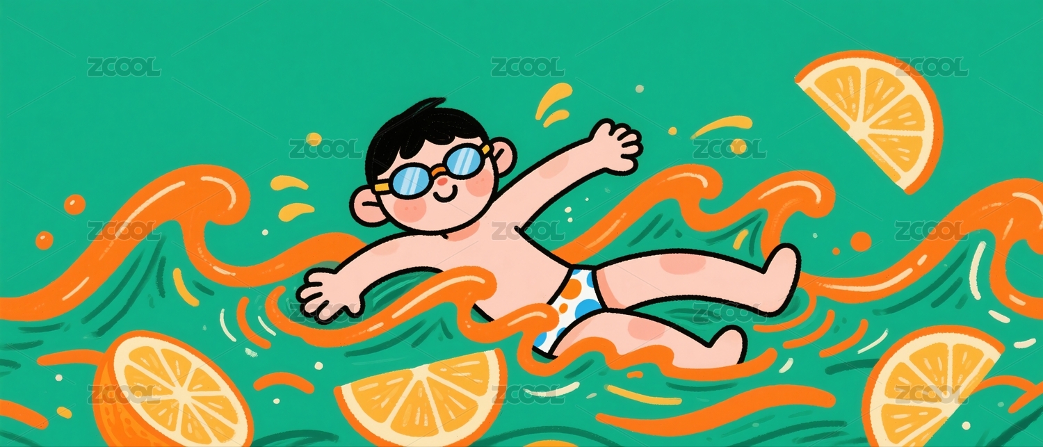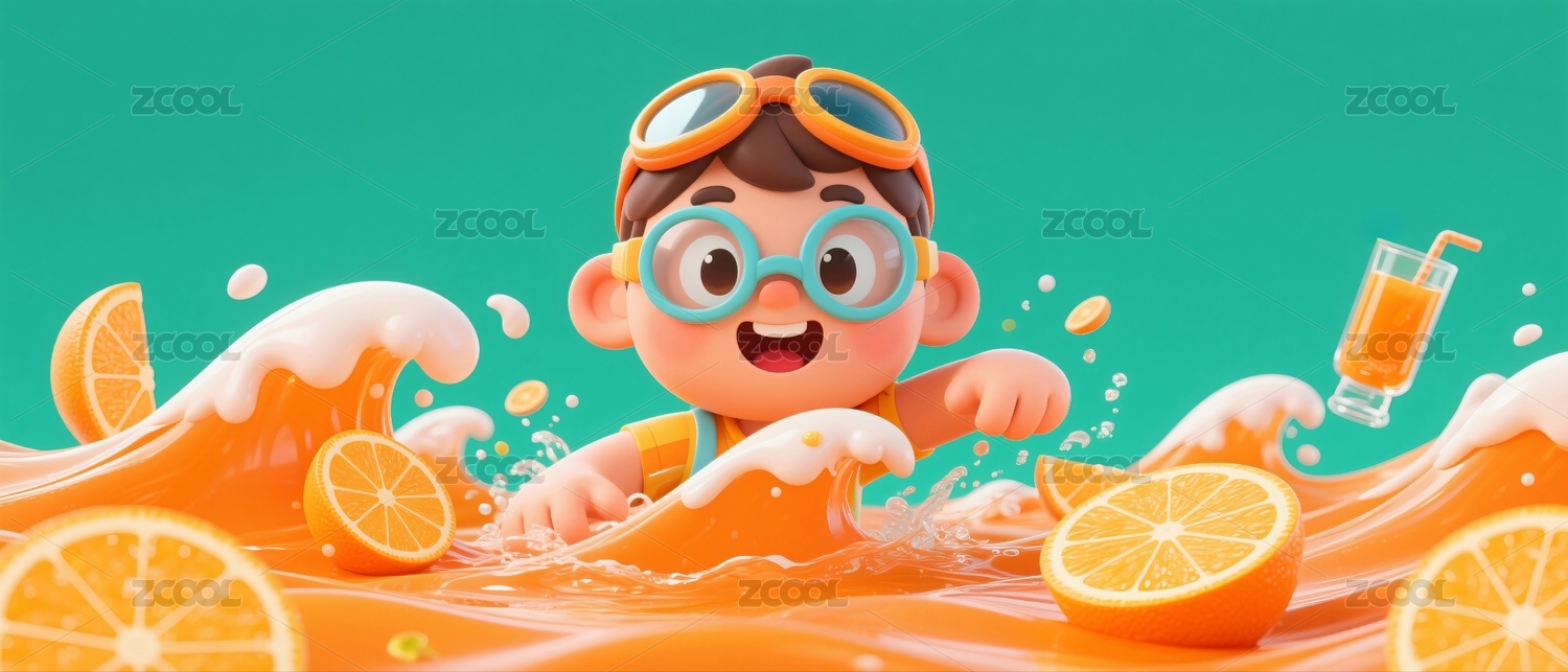 卡通,可爱,休闲,橙子,夏日,波浪,生活,果汁,玩耍,海浪