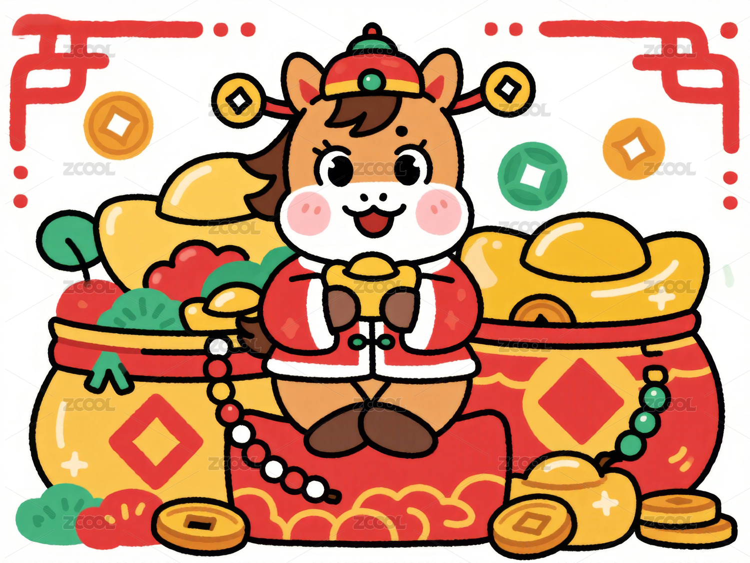 2026马年春节财神插画元素