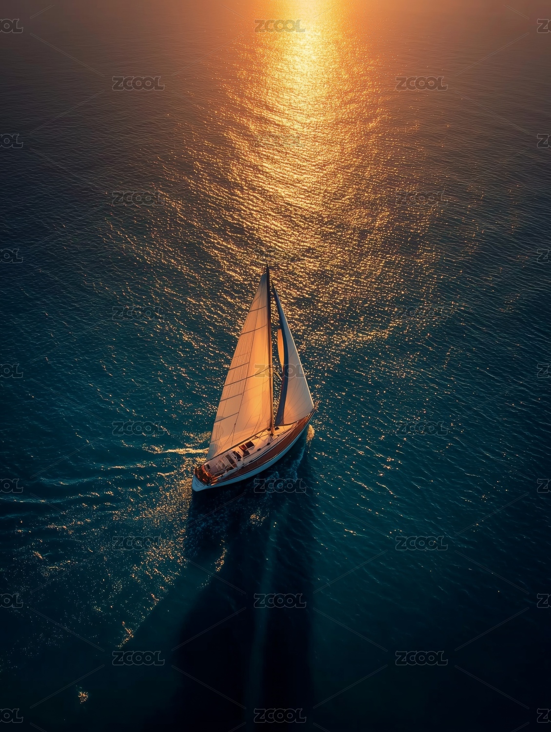 夕阳下的帆船:海上静谧时光
