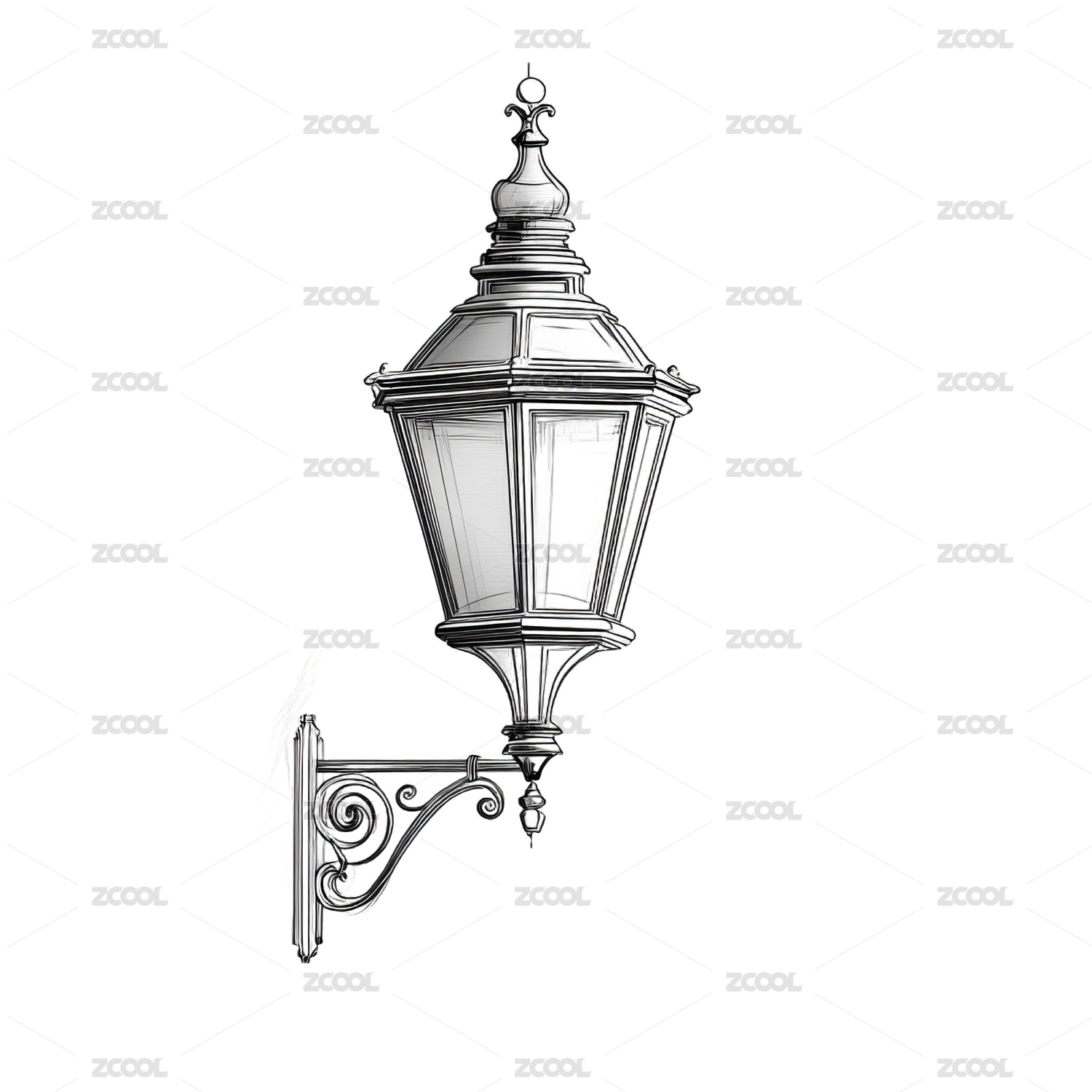 复古风格金属街道标识牌带华丽卷草纹和灯