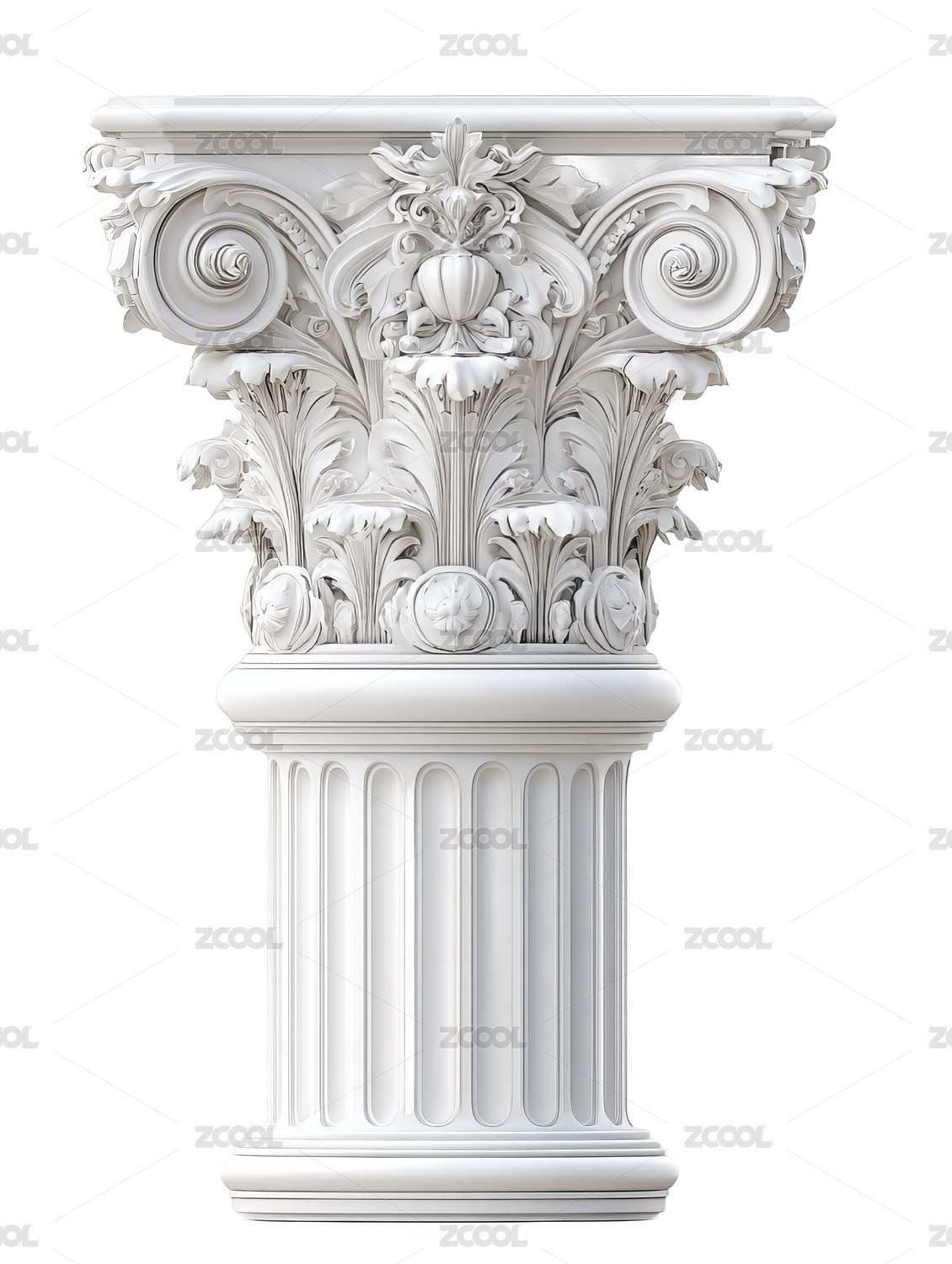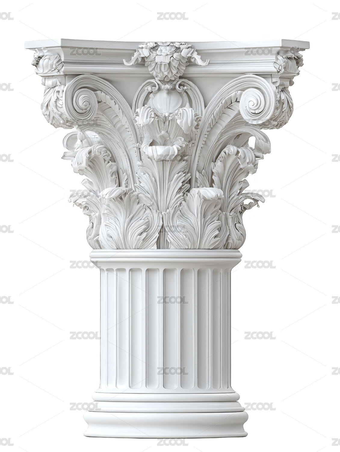 带有精美花卉与涡旋设计的白色装饰柱顶