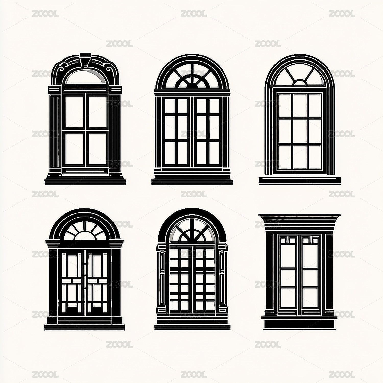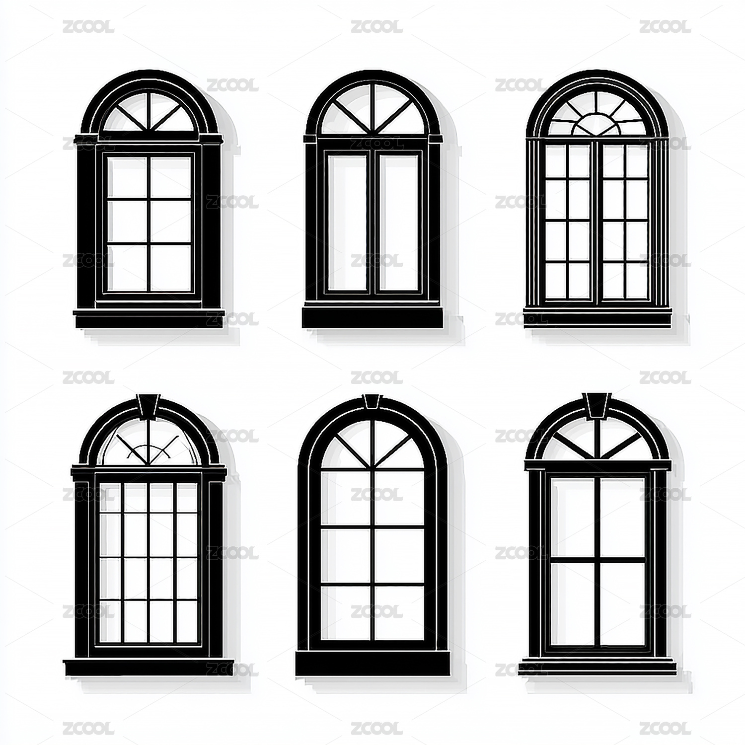 经典建筑风格白色拱形窗户