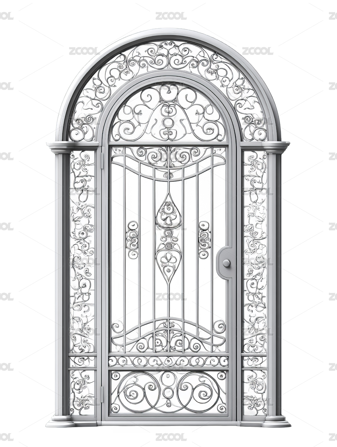 优雅装饰性锻铁门带拱形顶部设计