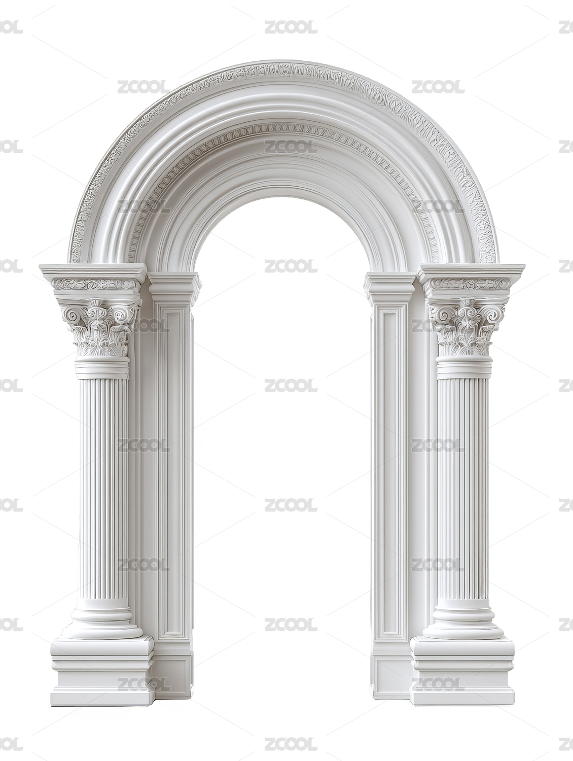 典雅经典白色拱形门框带装饰柱