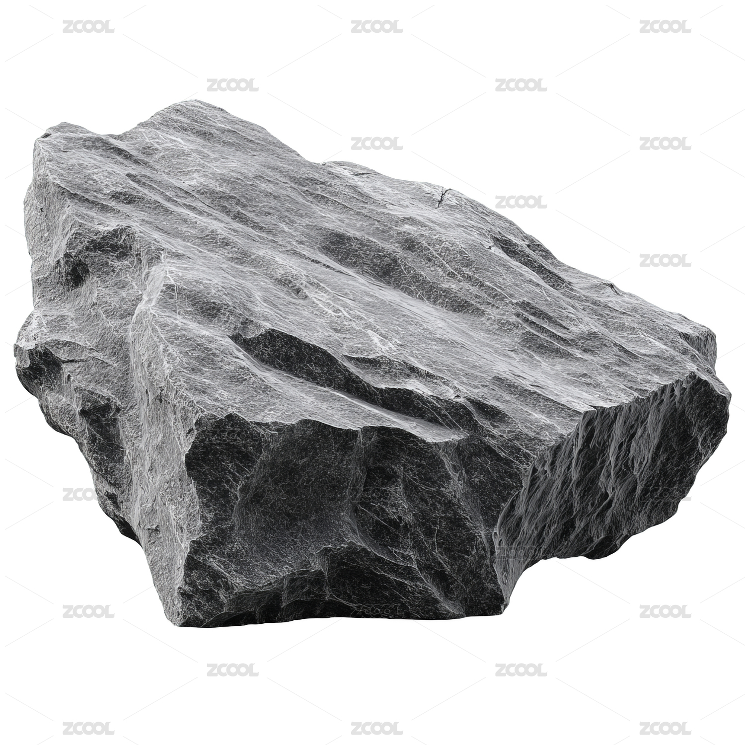 一块表面粗糙边缘参差不齐的灰色天然岩石