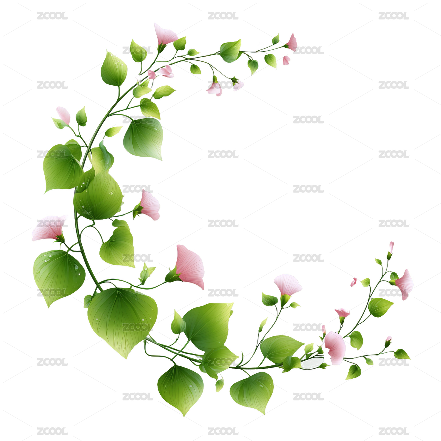 粉色花朵绿叶缠绕的装饰性藤蔓