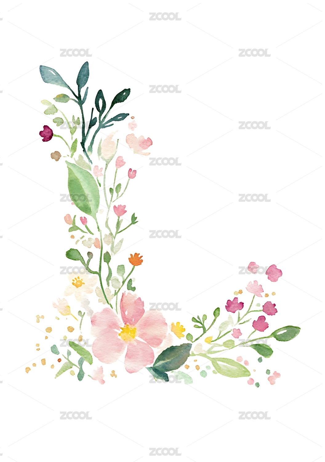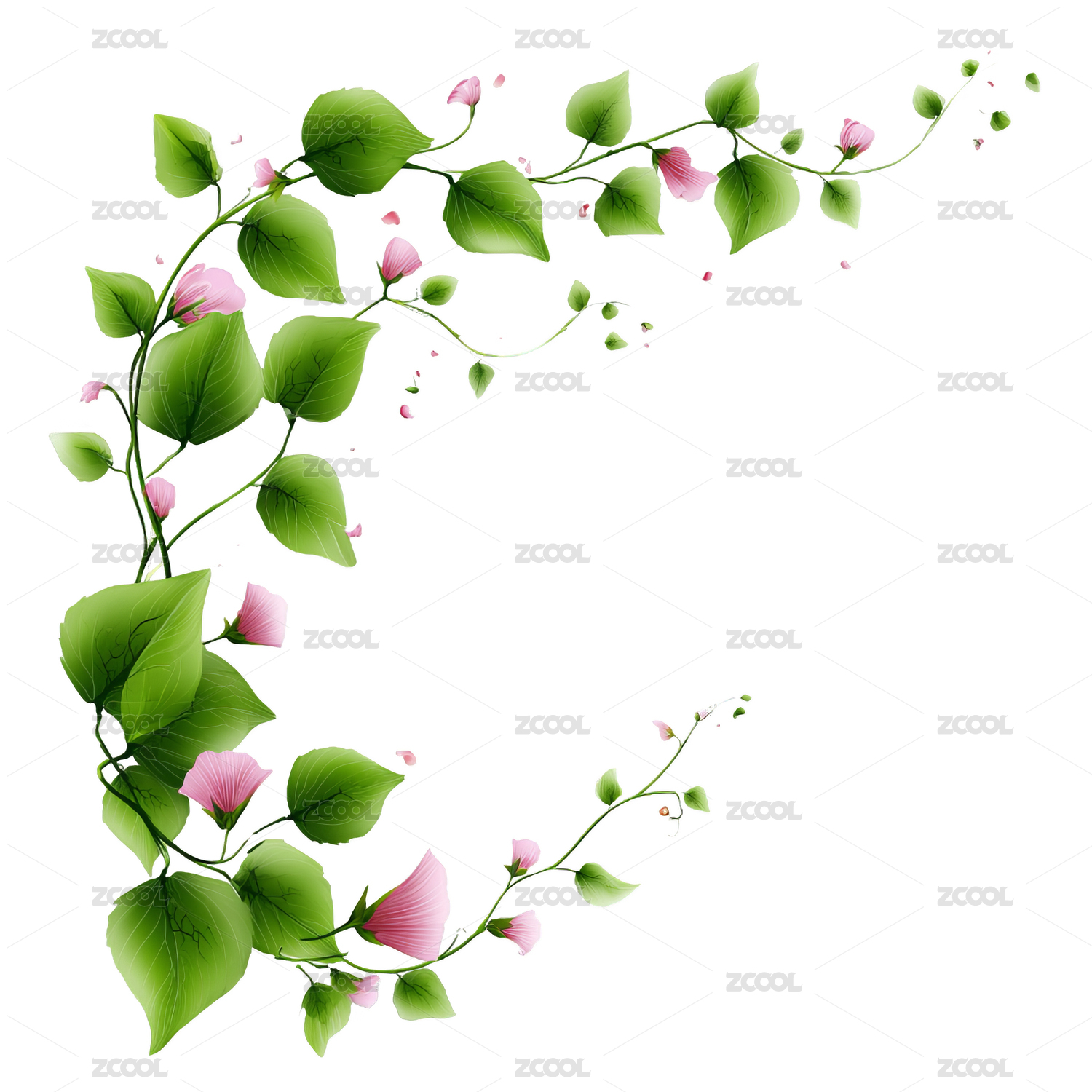 粉色花朵绿叶缠绕的装饰性藤蔓
