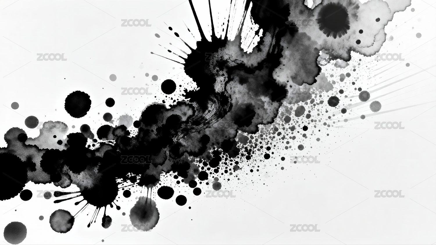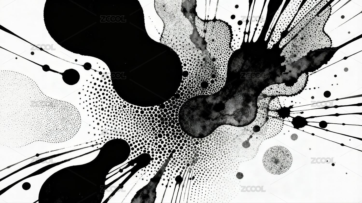 黑白水墨晕染交织呈现空灵意境的艺术视觉