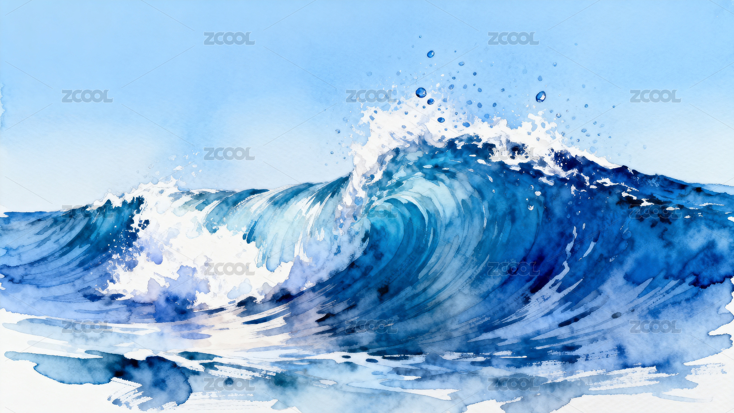 蓝色海浪水彩画