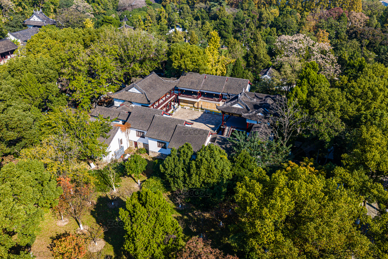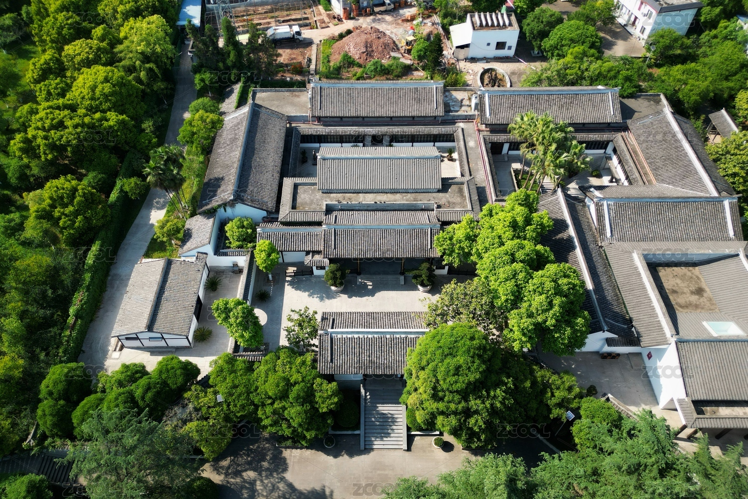 航拍海南海口五公祠古典园林湖泊及古建筑群