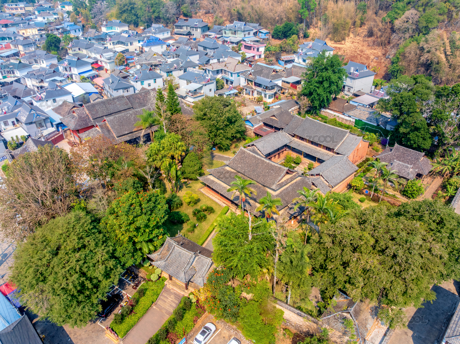 中国云南普洱娜允古镇孟连宣抚司署航拍风光