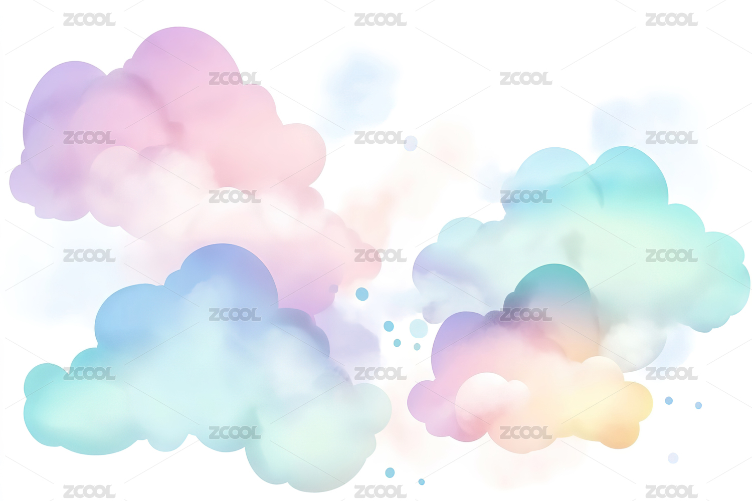 粉蓝渐变水彩云朵插画清新治愈设计素材