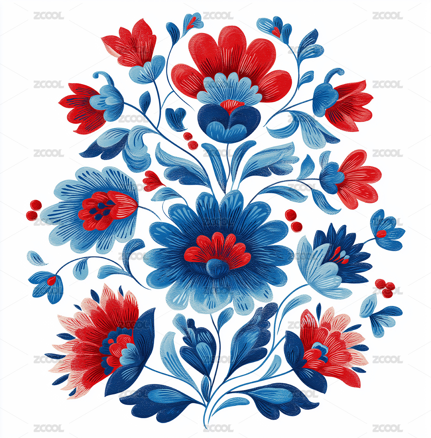 民俗风,花卉,插画,装饰,背景,素材,艺术,清新,色彩,创意