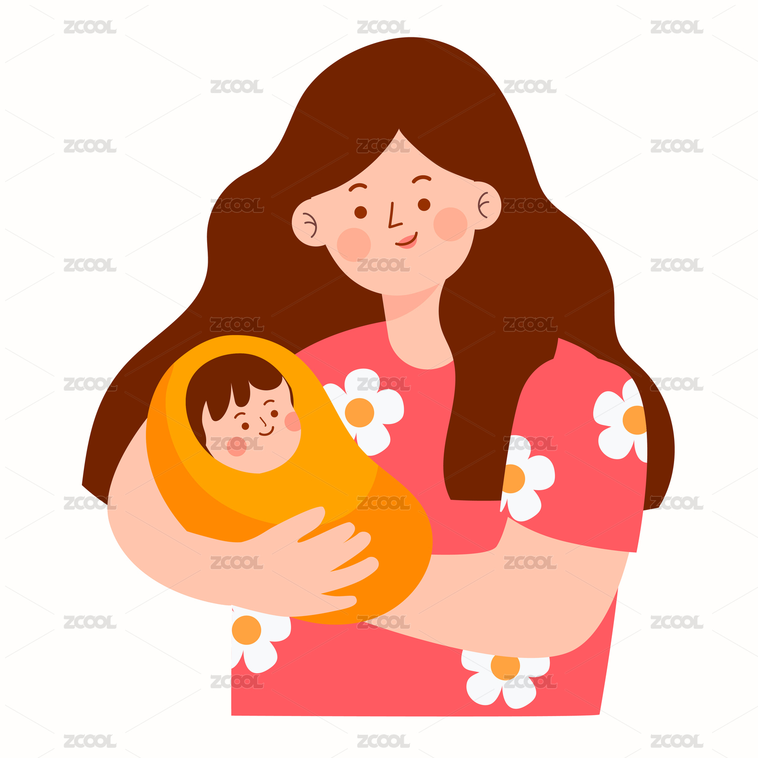 卡通风格妈妈怀抱宝宝哺乳温馨母婴插画