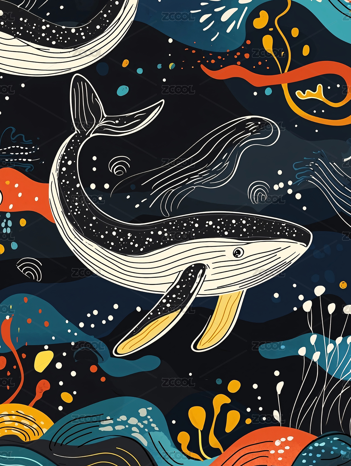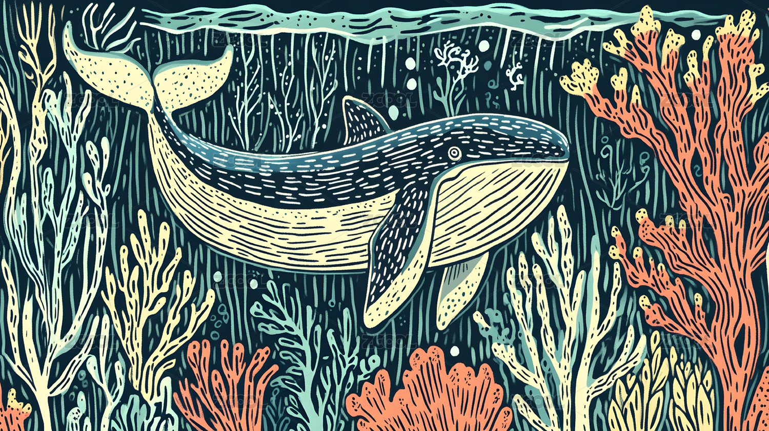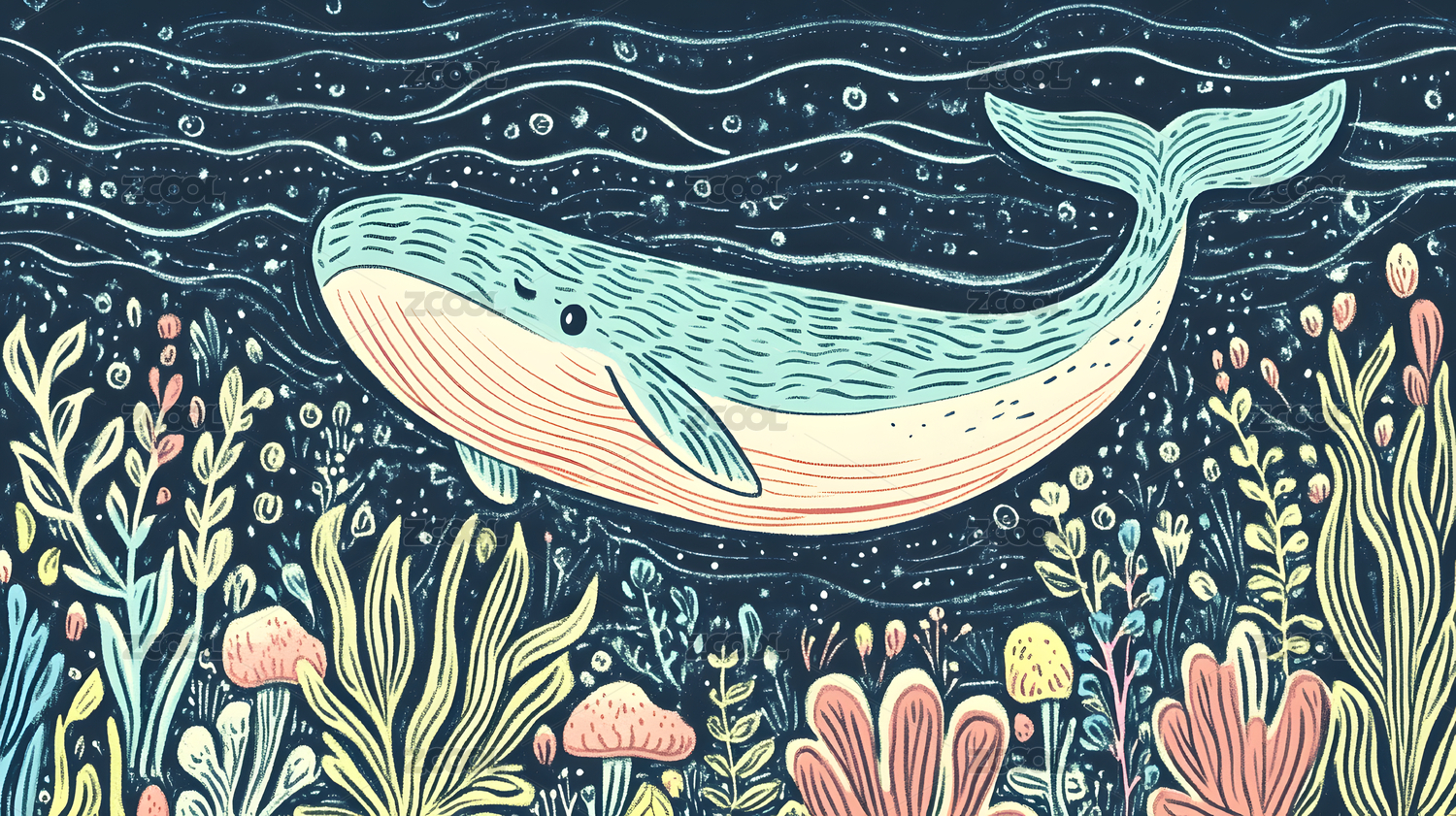 唯美大海鲸鱼手绘插画