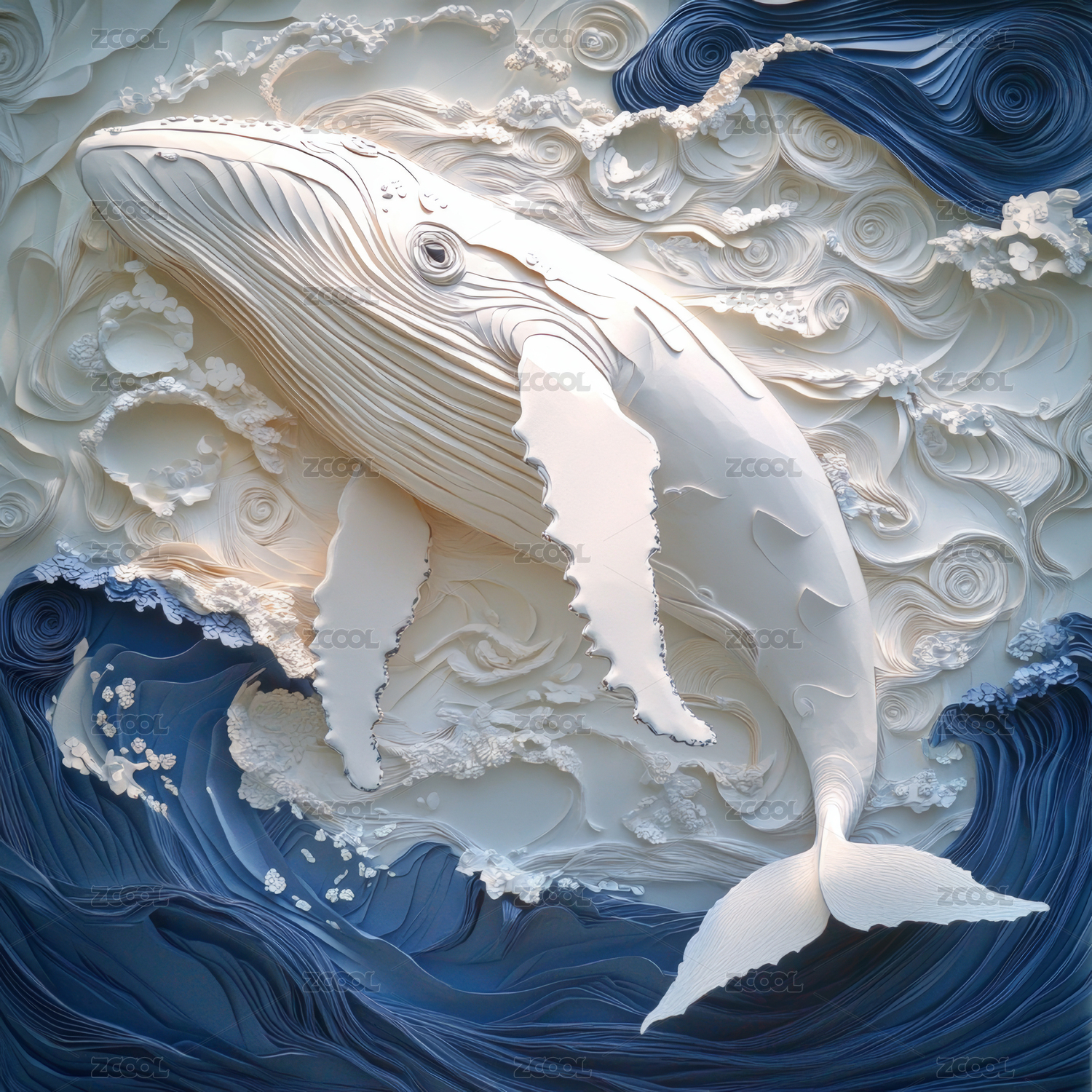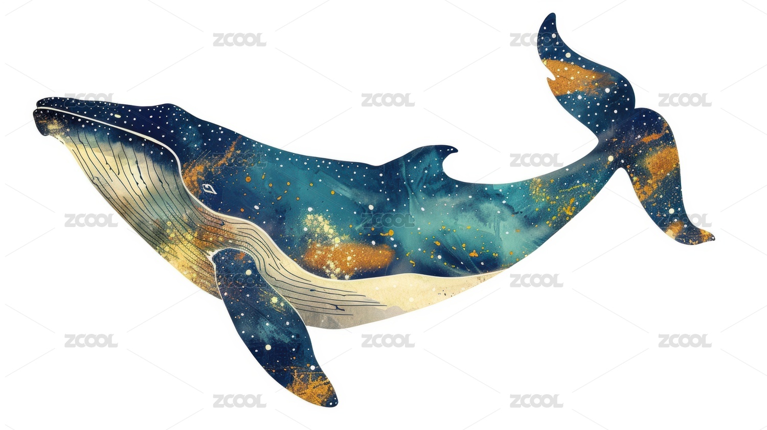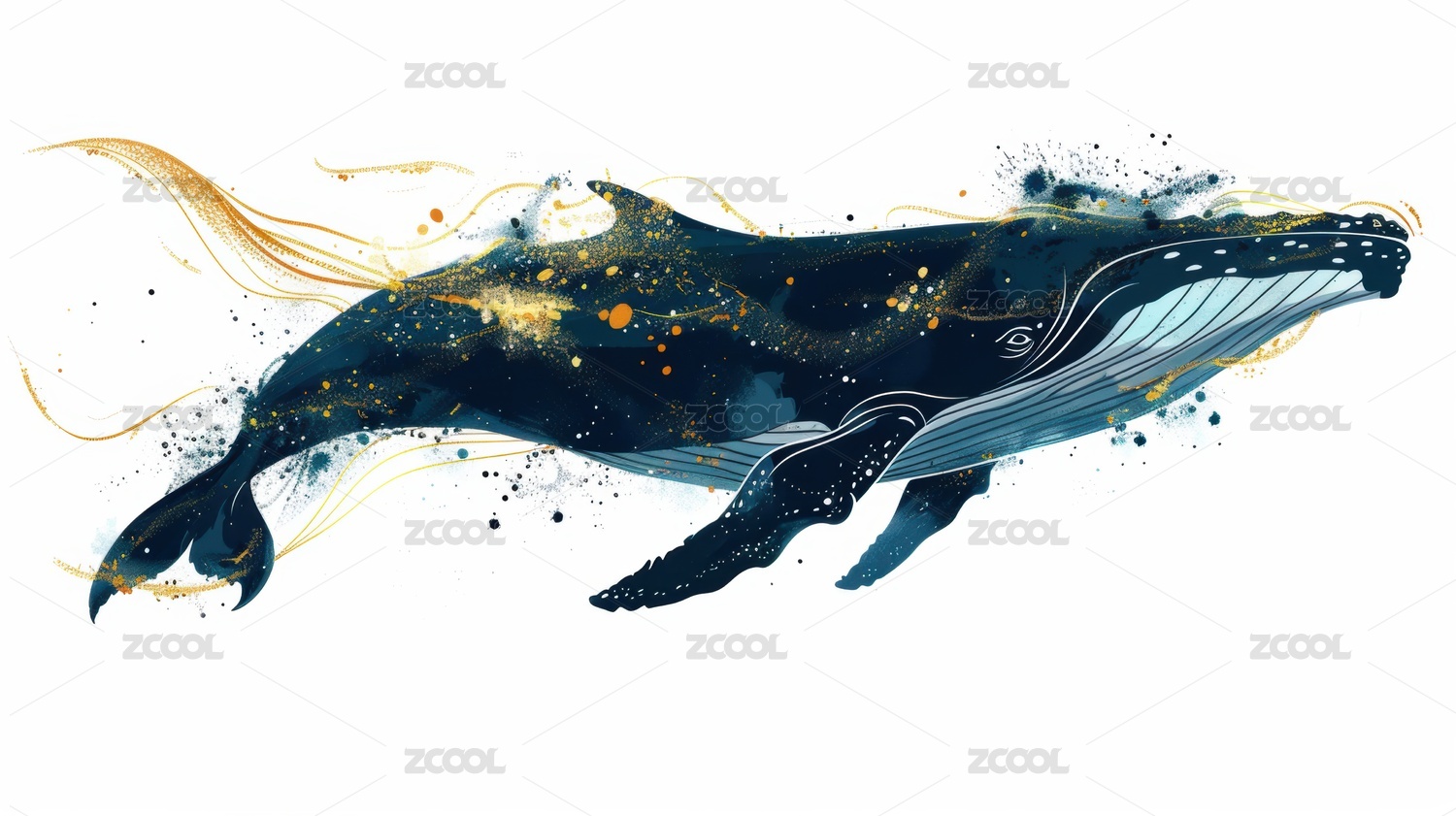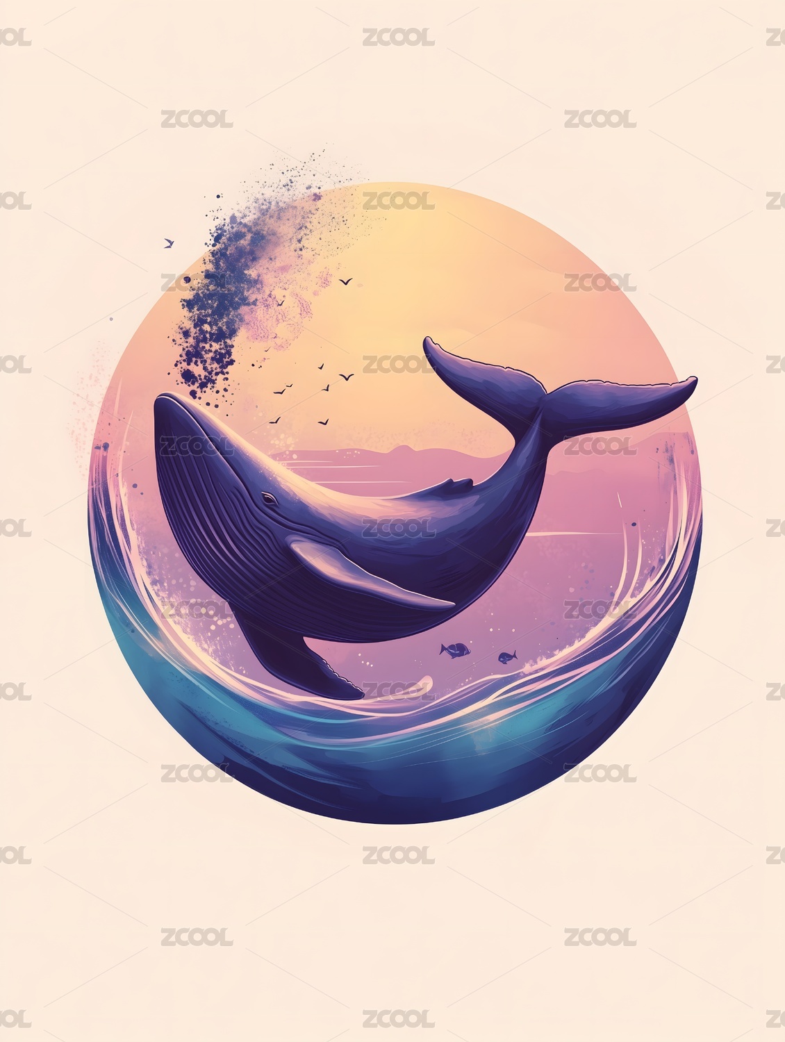 唯美大海鲸鱼手绘插画