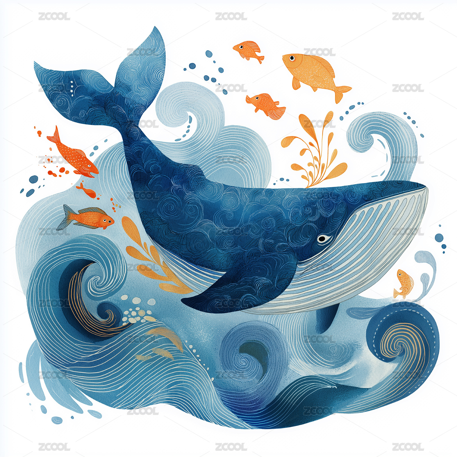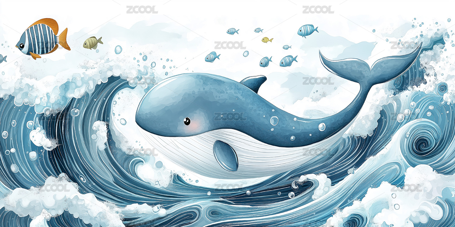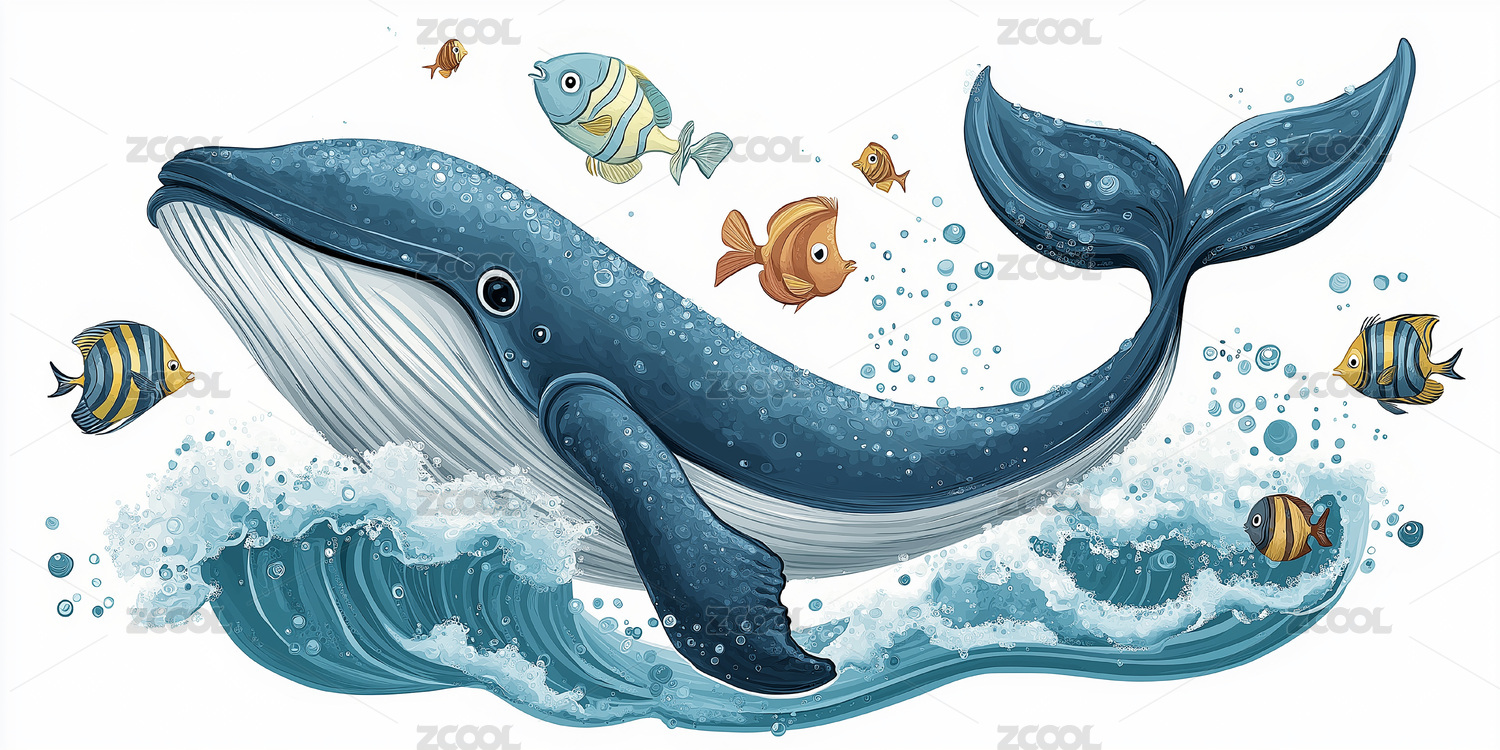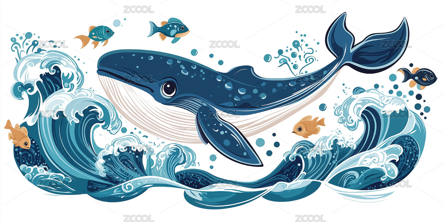 海洋鲸鱼与小鱼插画装饰素材