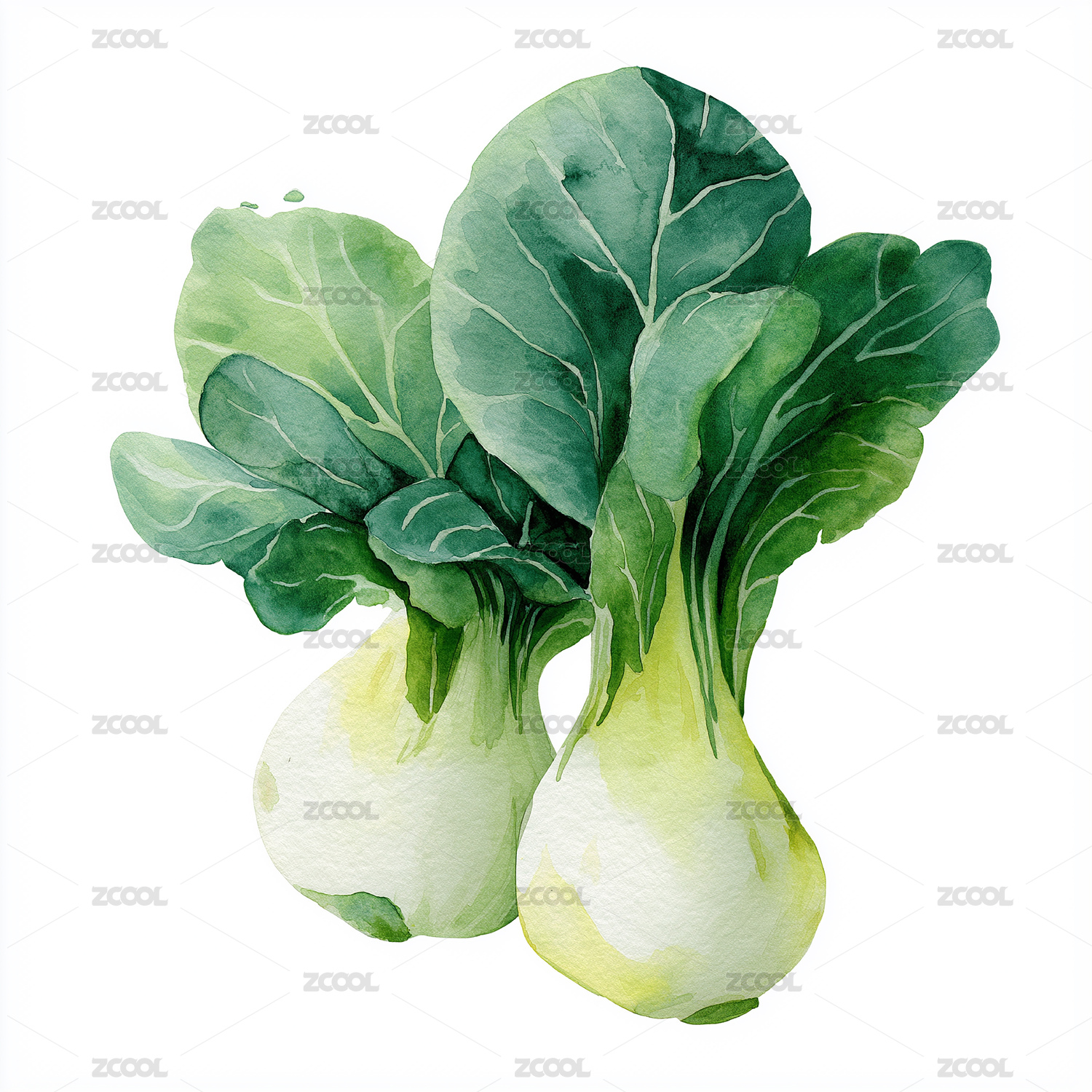水彩小白菜插画食材设计素材