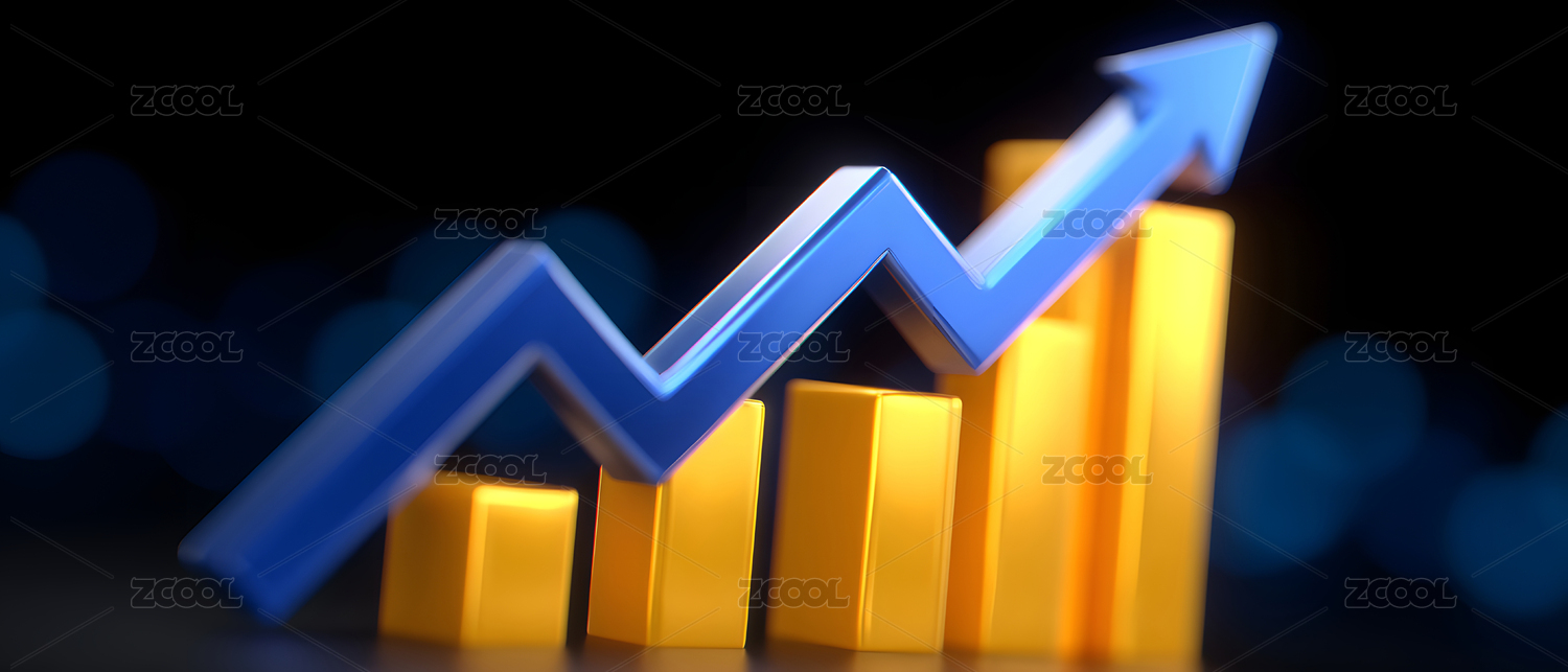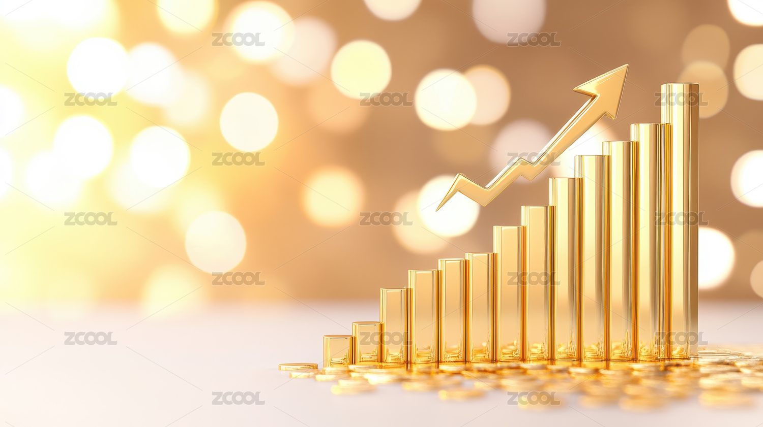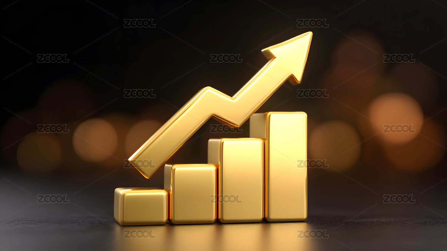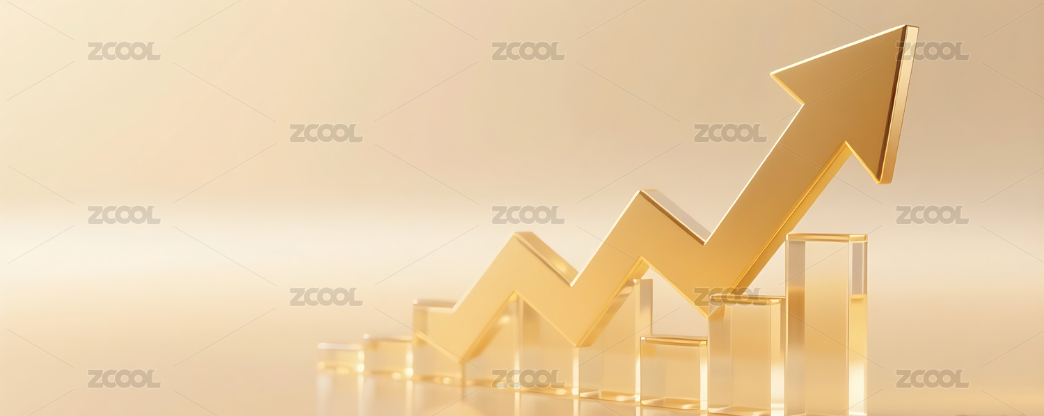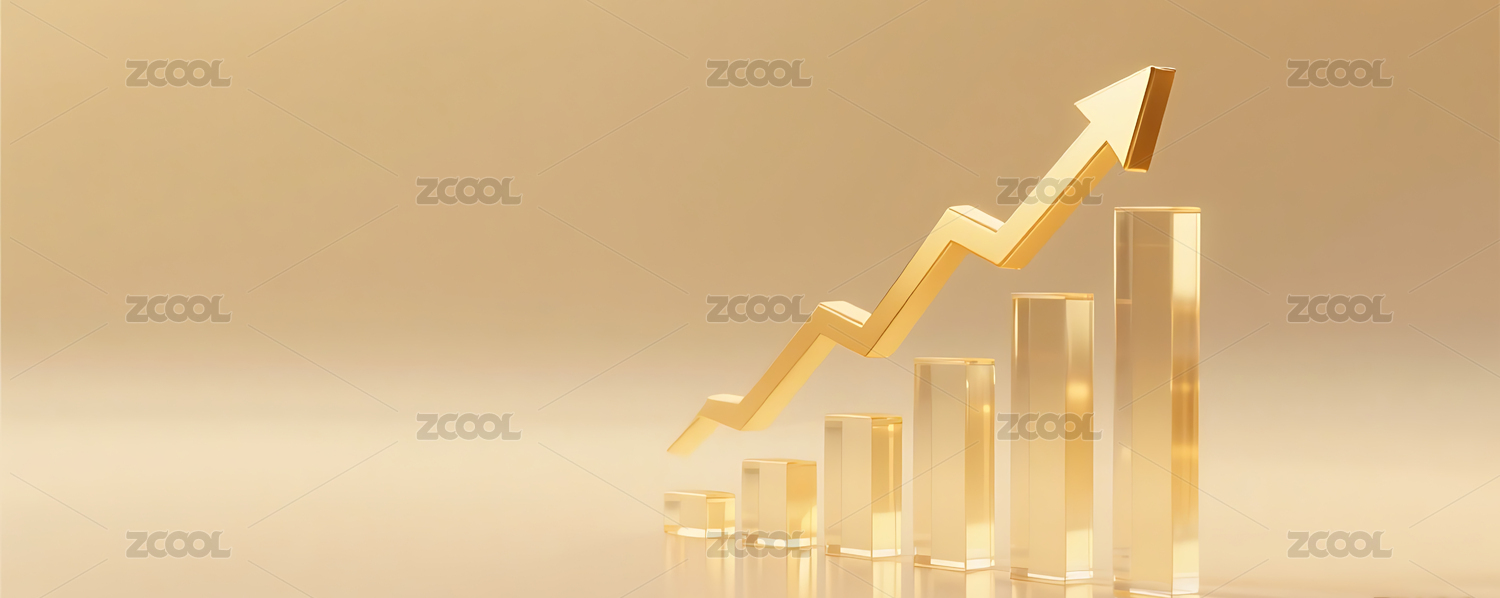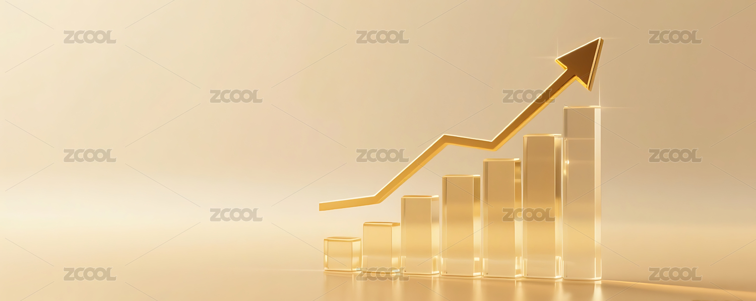 金色渐变玻璃质感金融柱状图增长箭头背景
