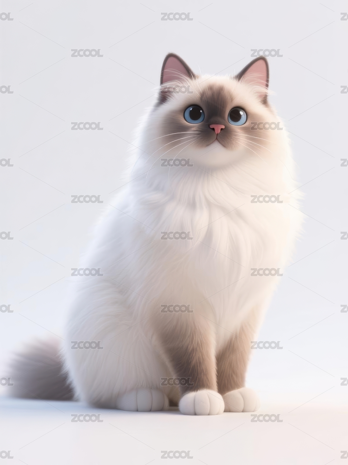 布偶猫肖像蓬松长毛蓝眼灰白摄影
