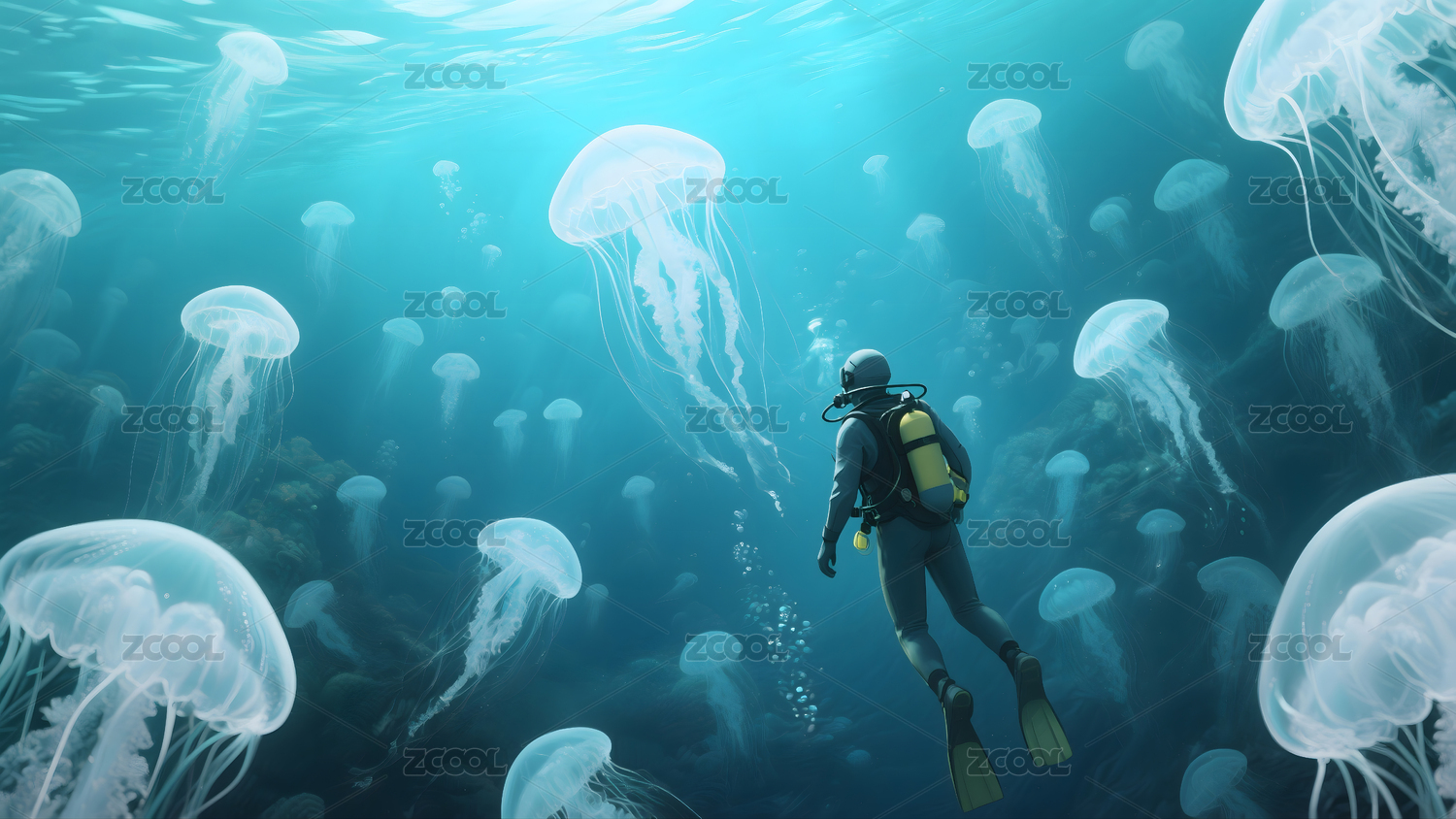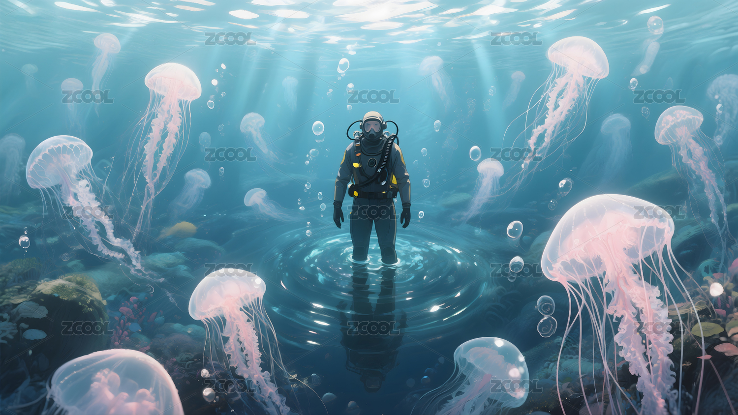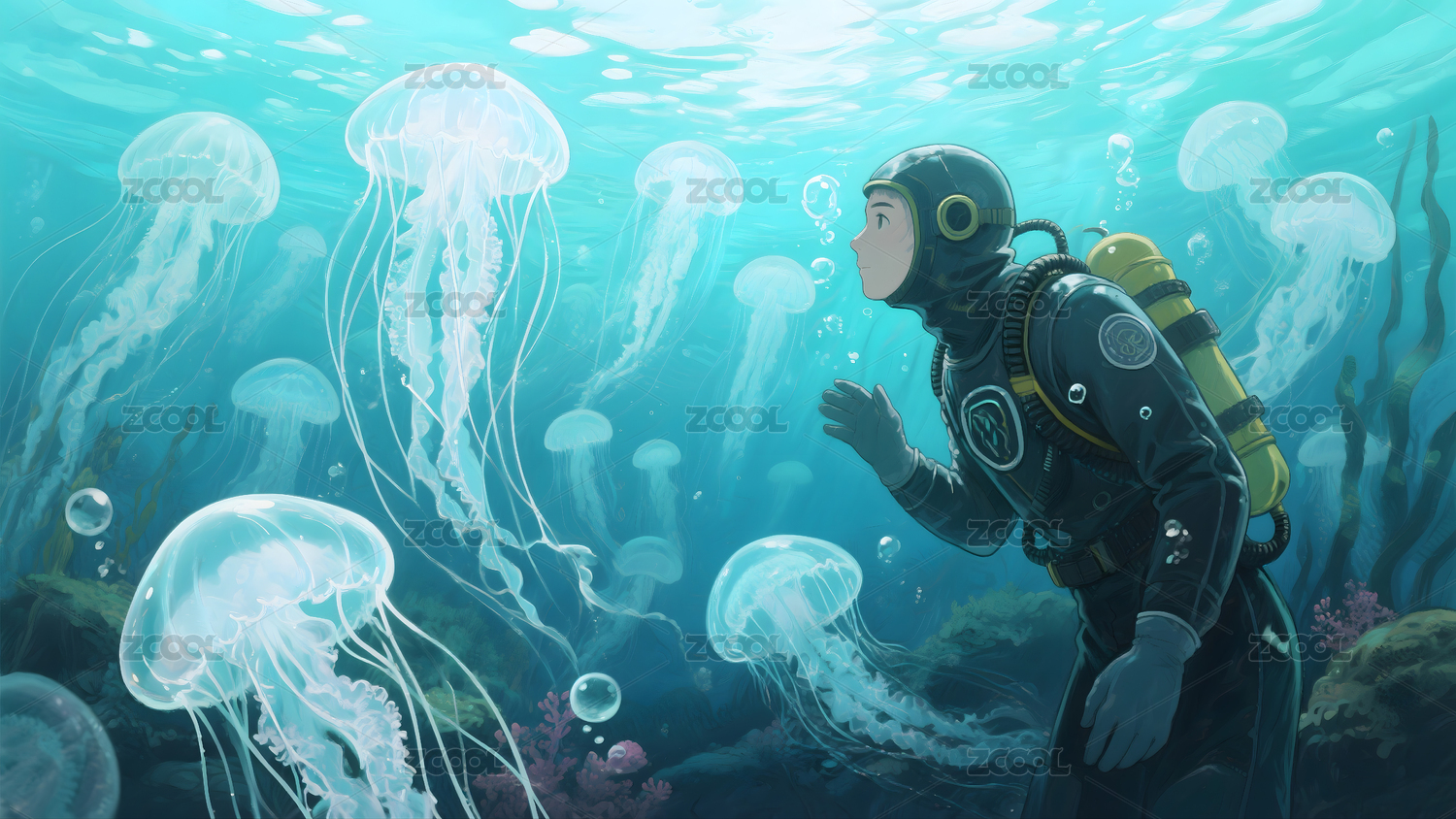 海,水,水下世界,奇幻,水母,海洋,少年,海洋生物,景观,自然