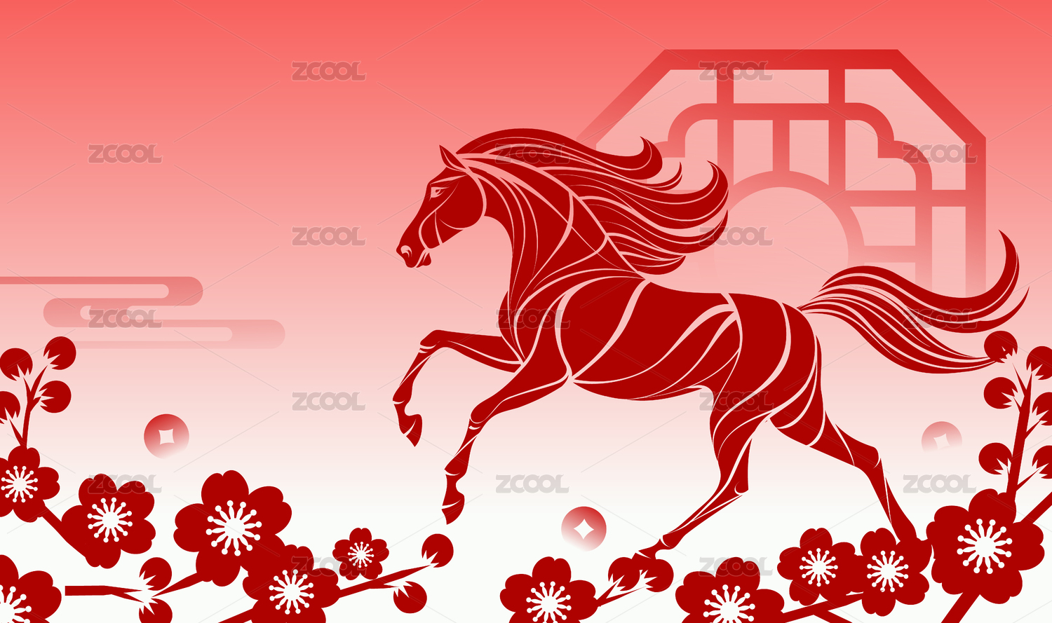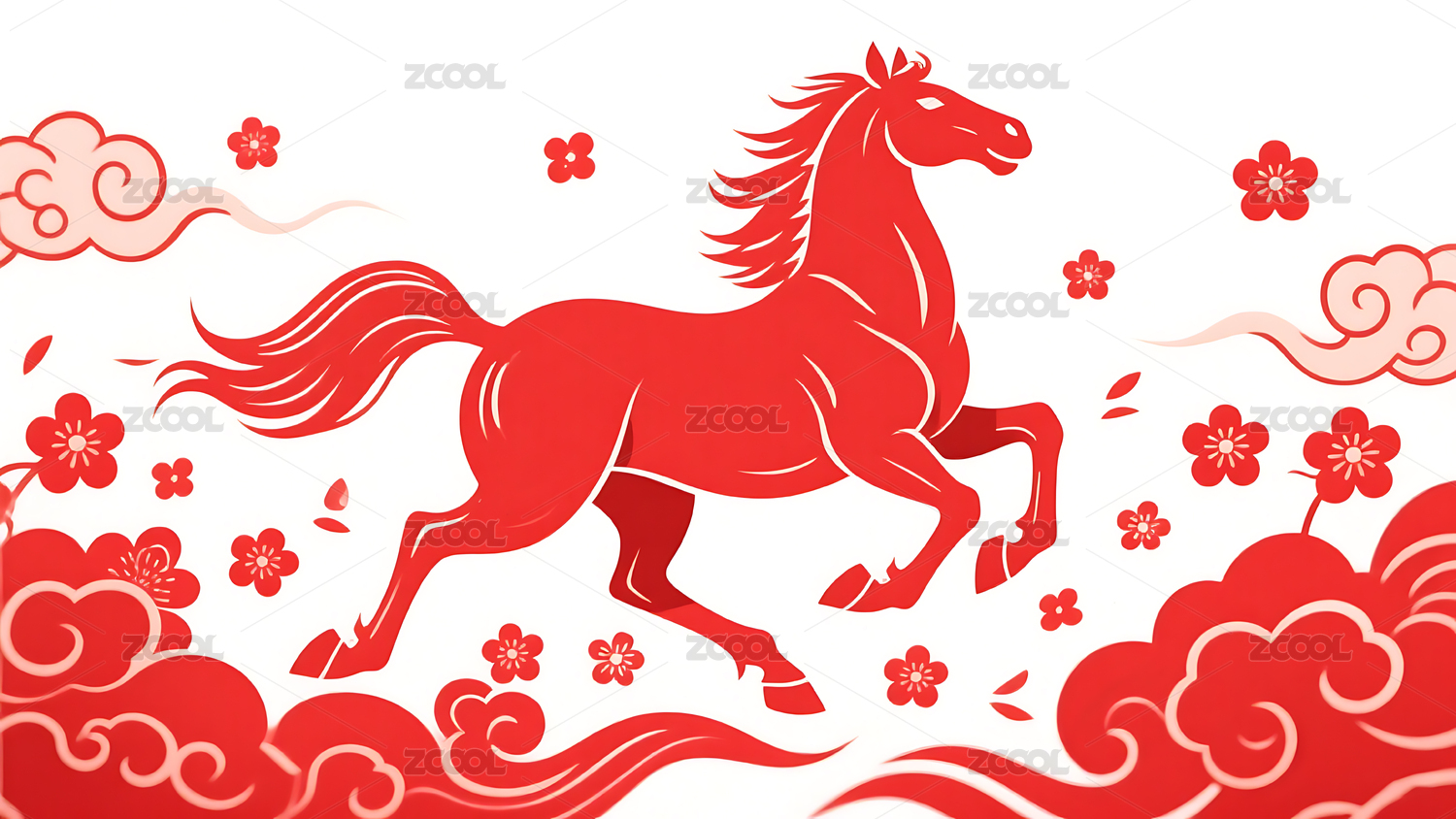 2026年,春节,新年,马年,红色,剪纸,祥云,一路生花,吉祥,如意