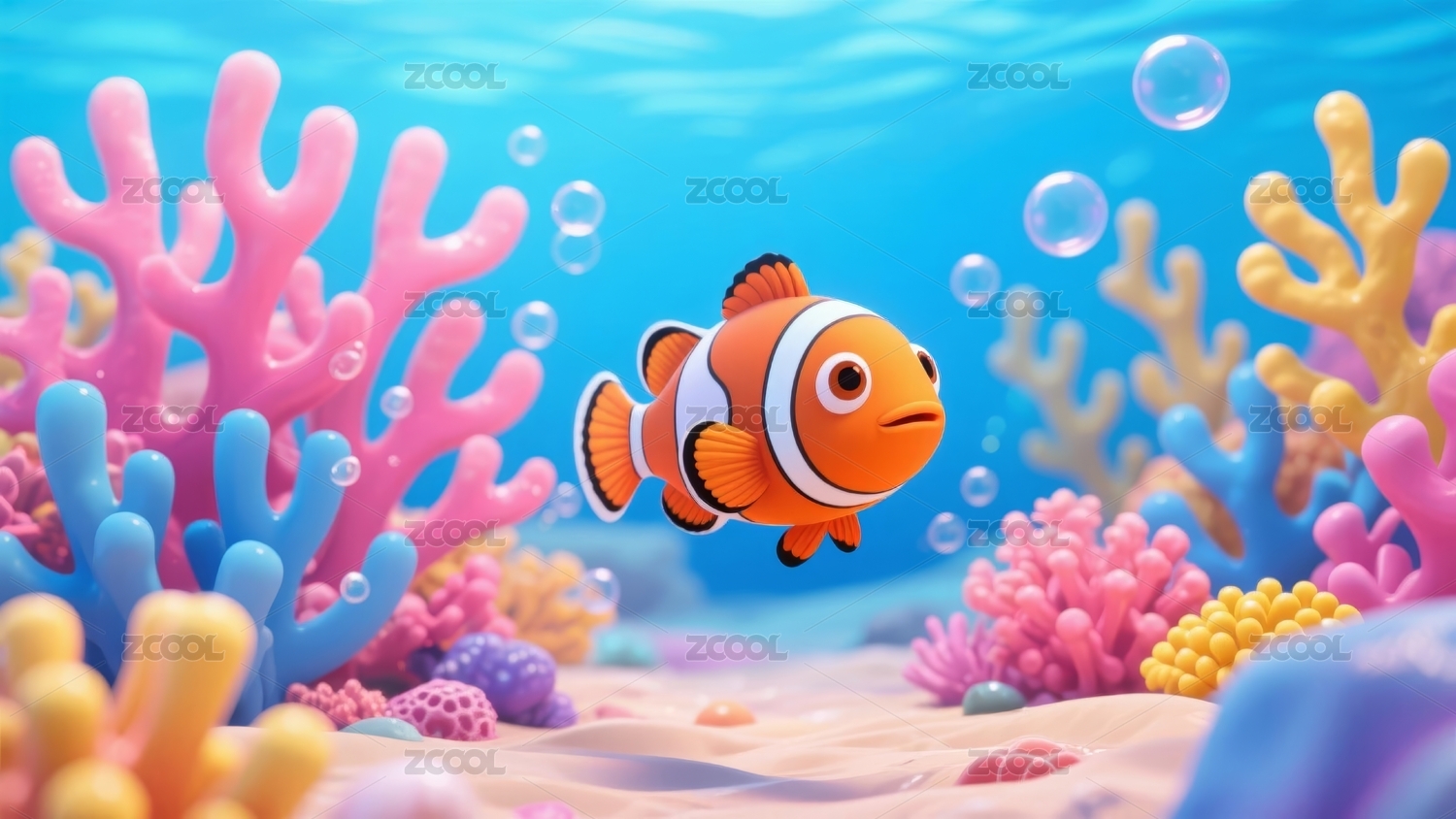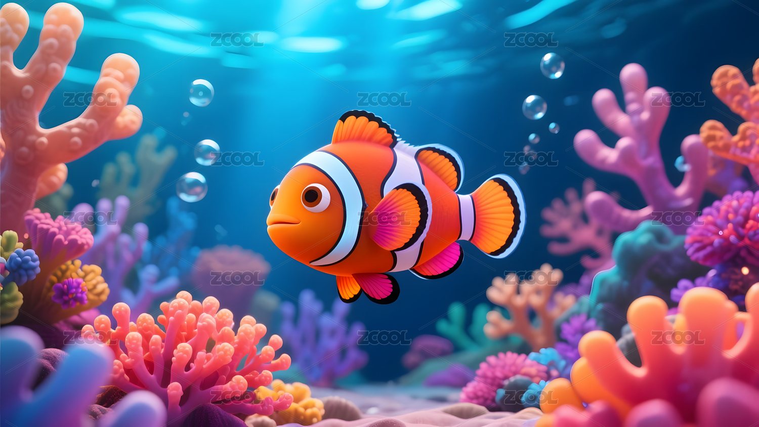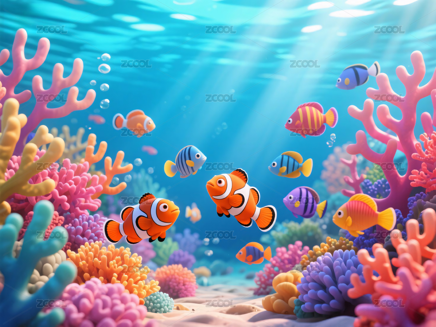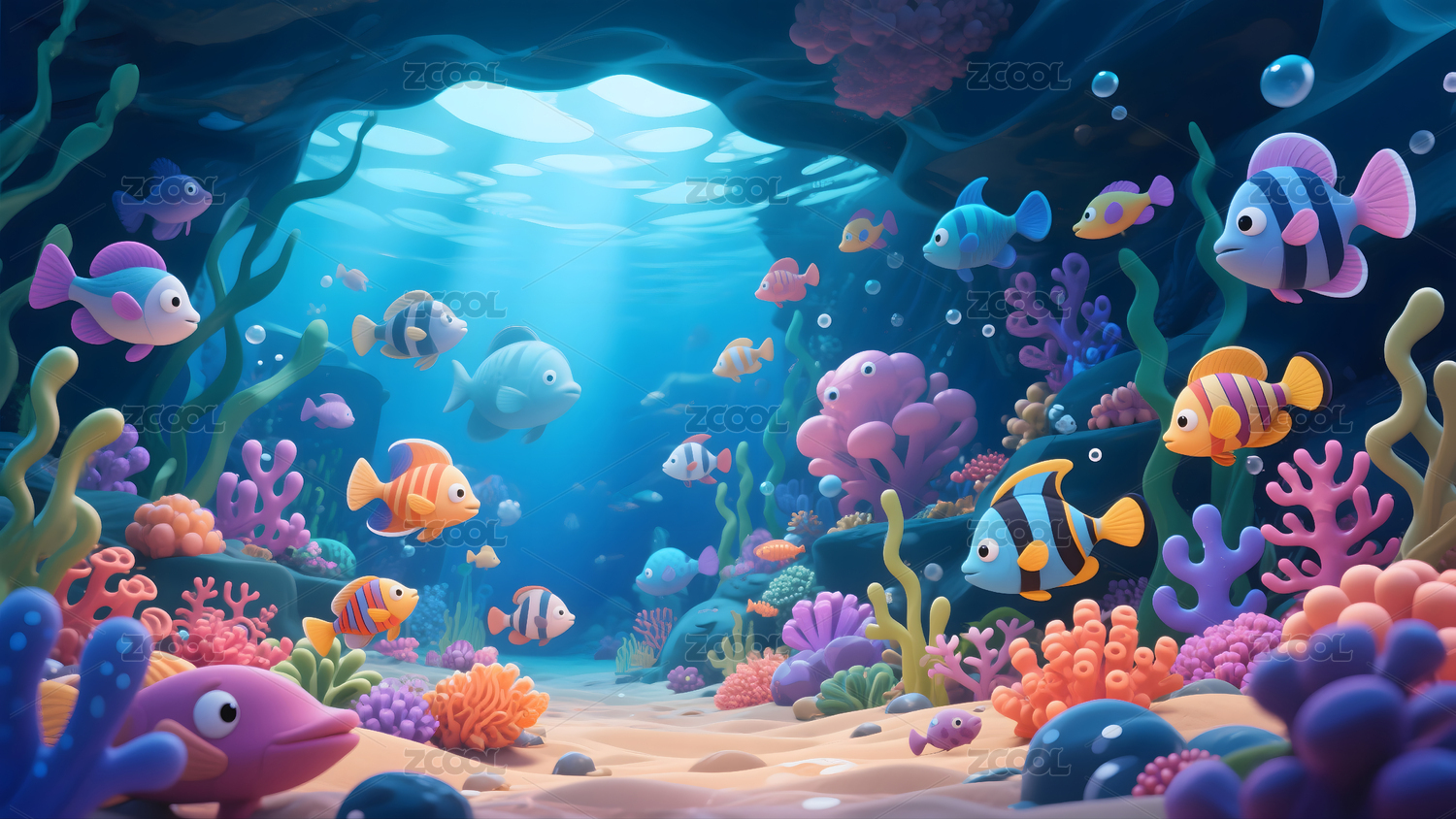 海底世界3D海洋生物珊瑚梦幻唯美自然背景