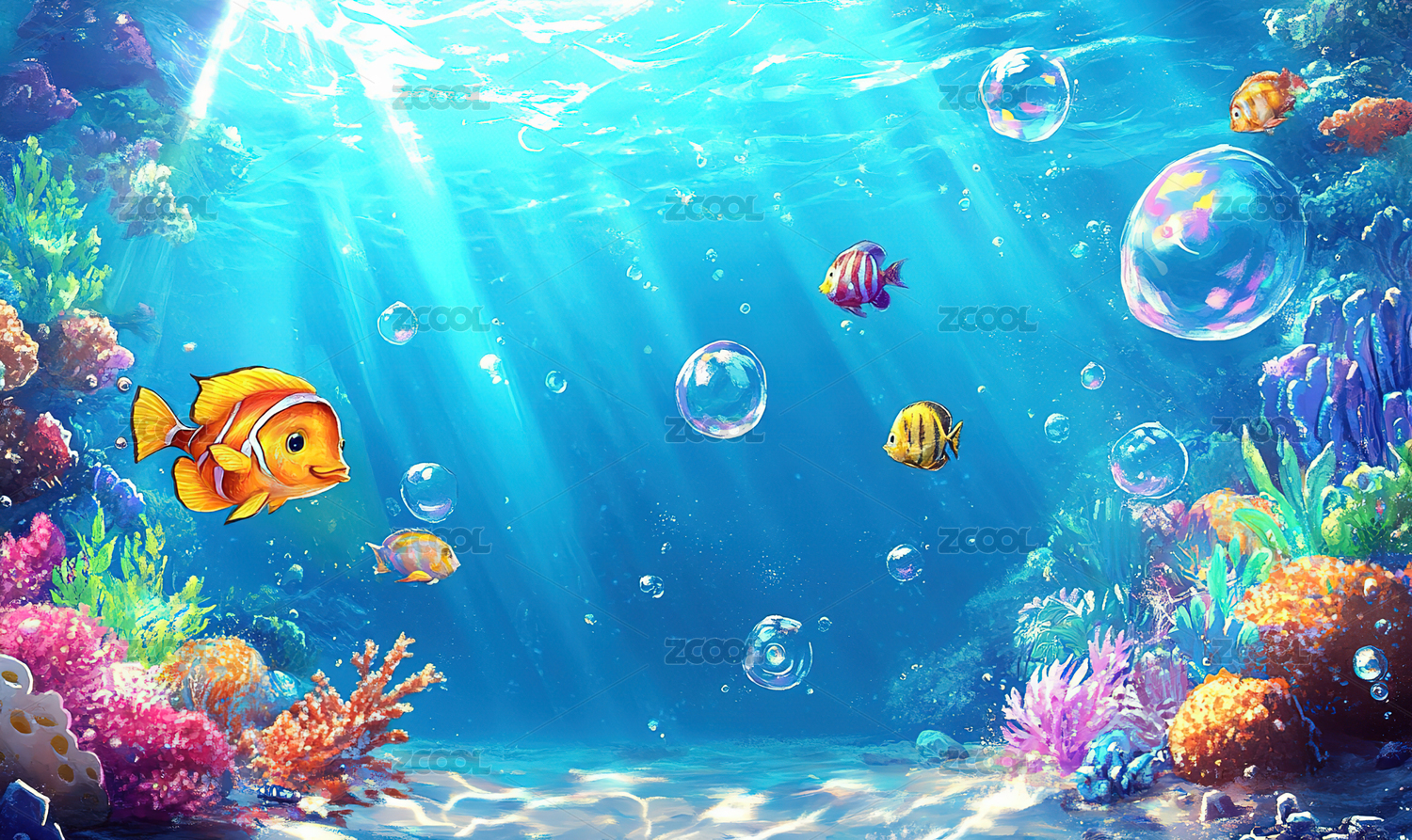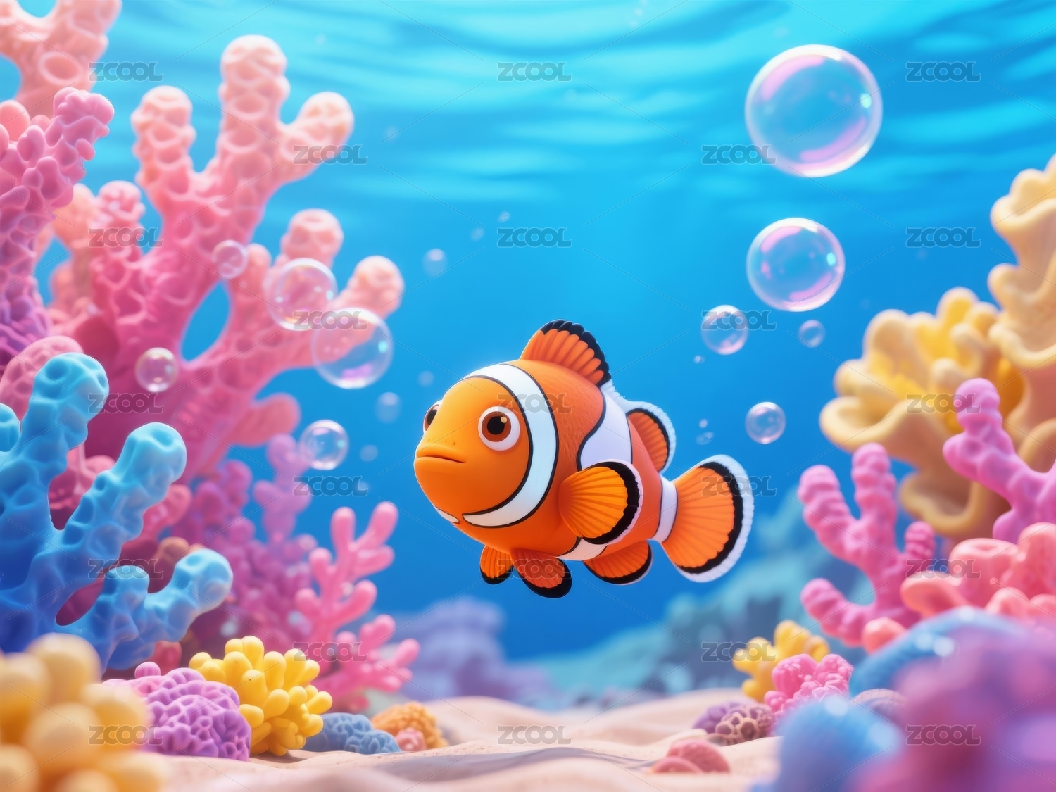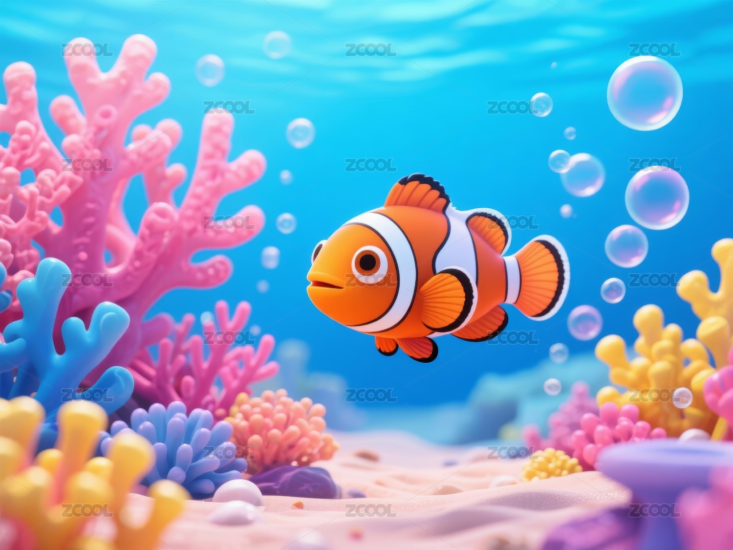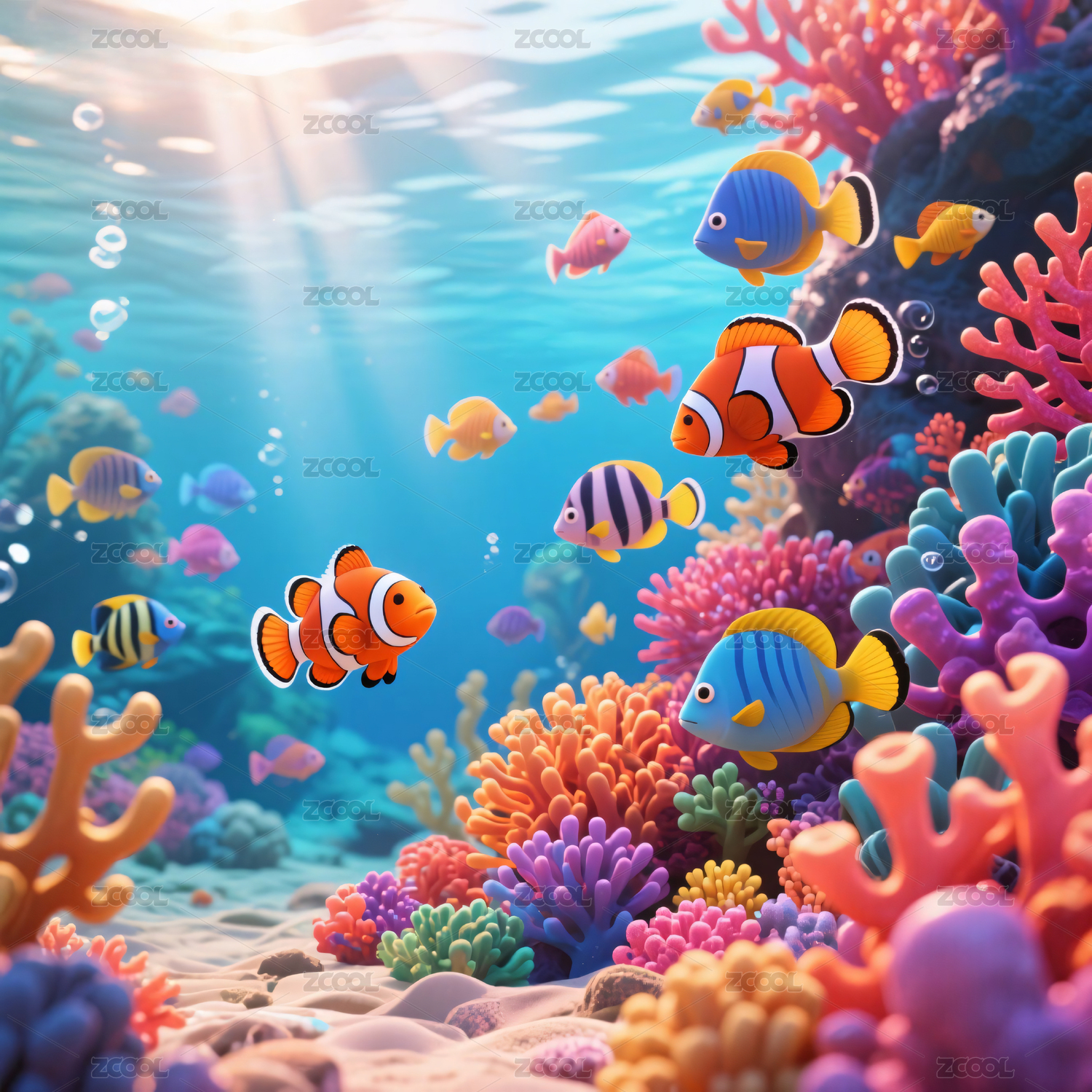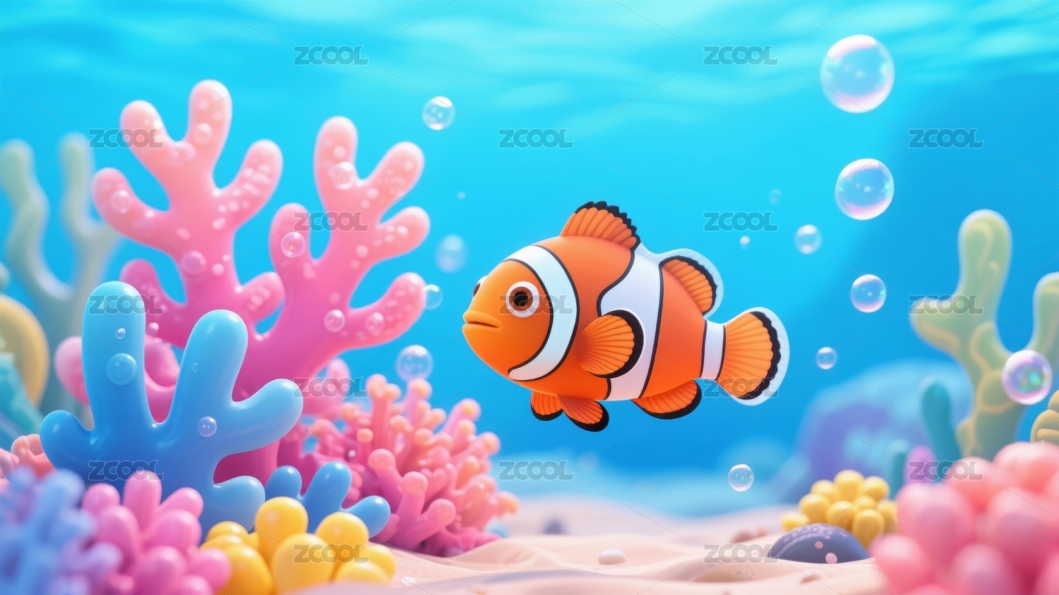 海底世界3D海洋生物珊瑚梦幻唯美自然背景